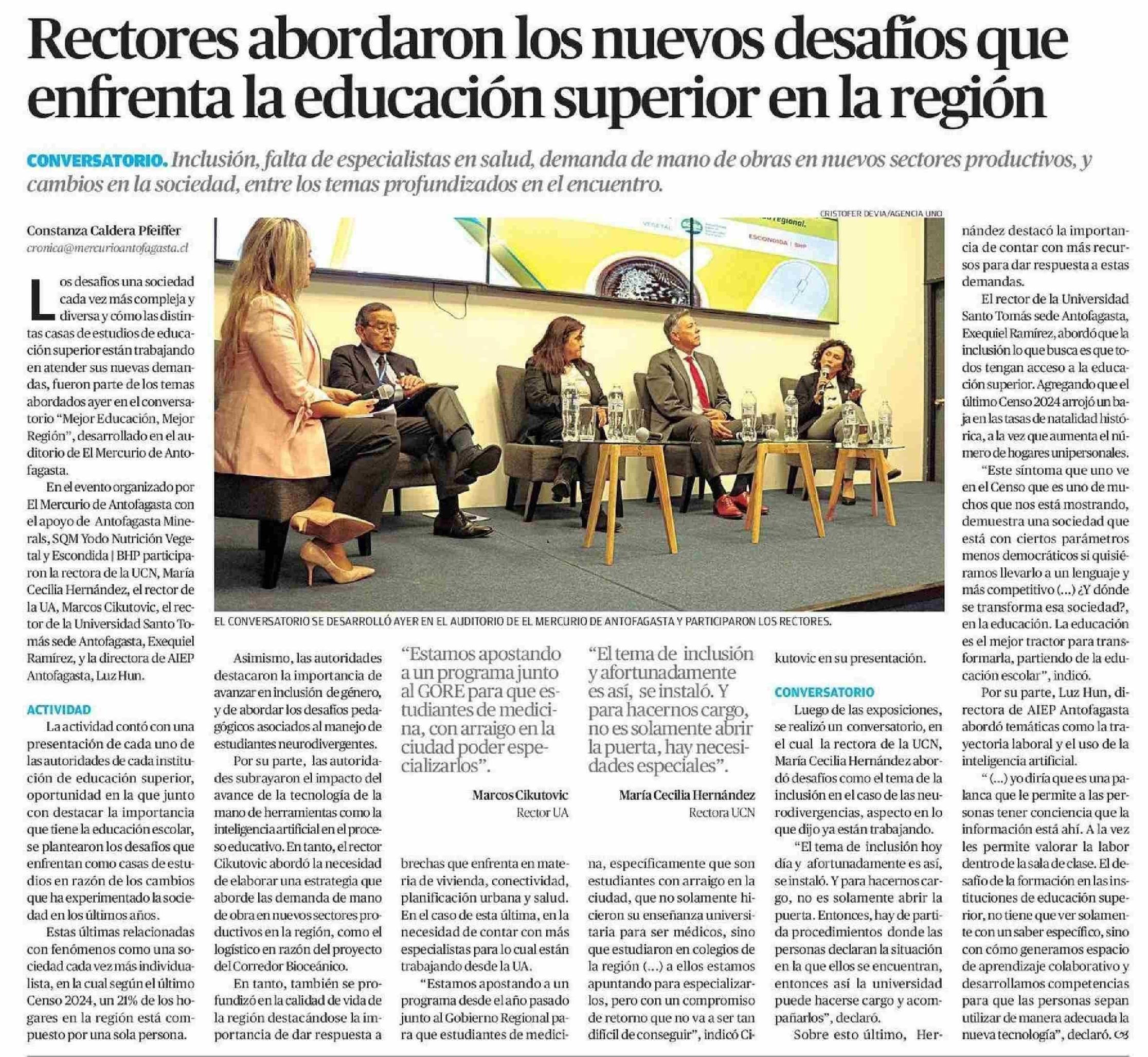 Rectores abordaron los nuevos desafíos que enfrenta la educación superior en la región 09-05-2025 El Mercurio de Antofagasta |