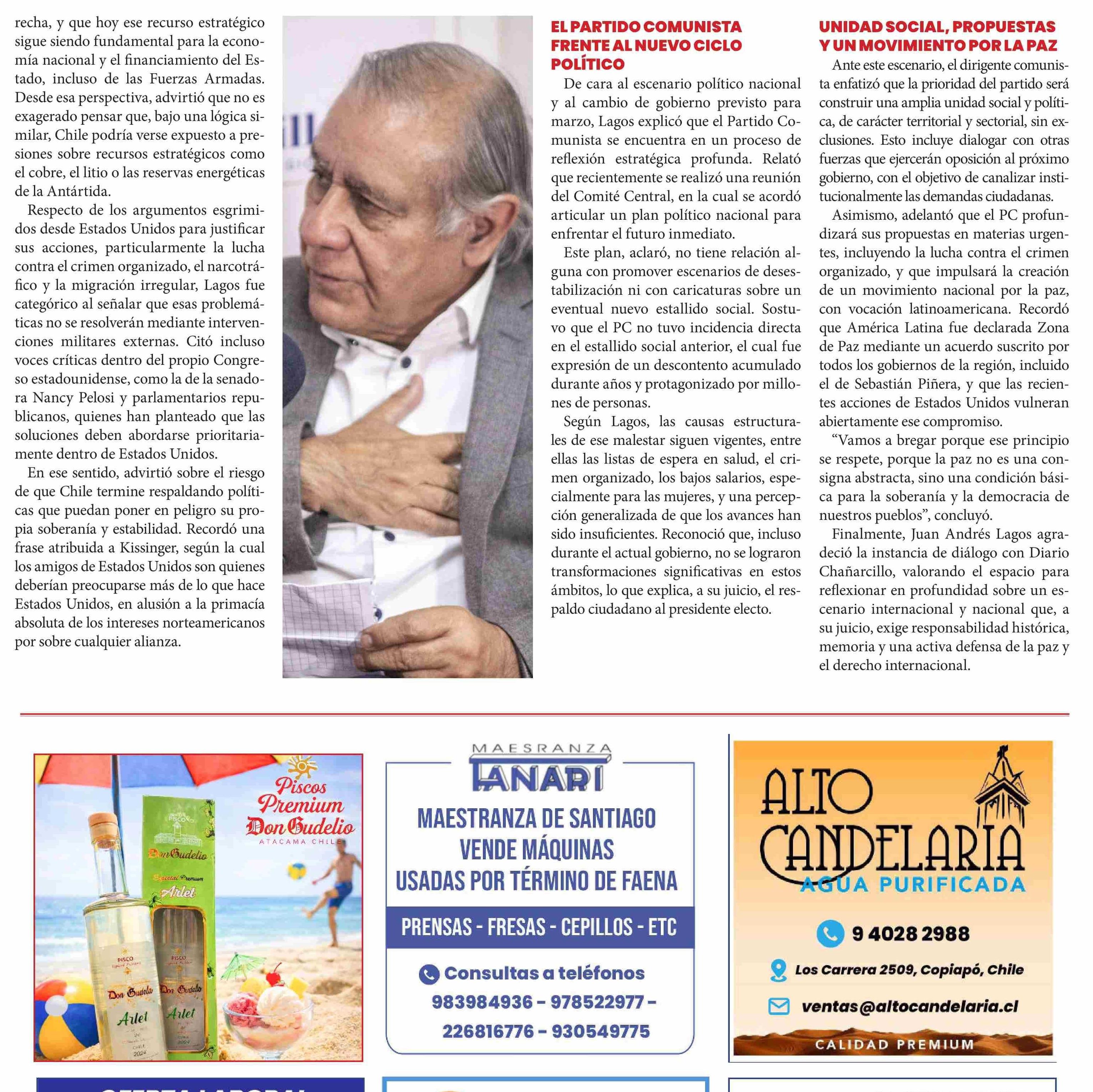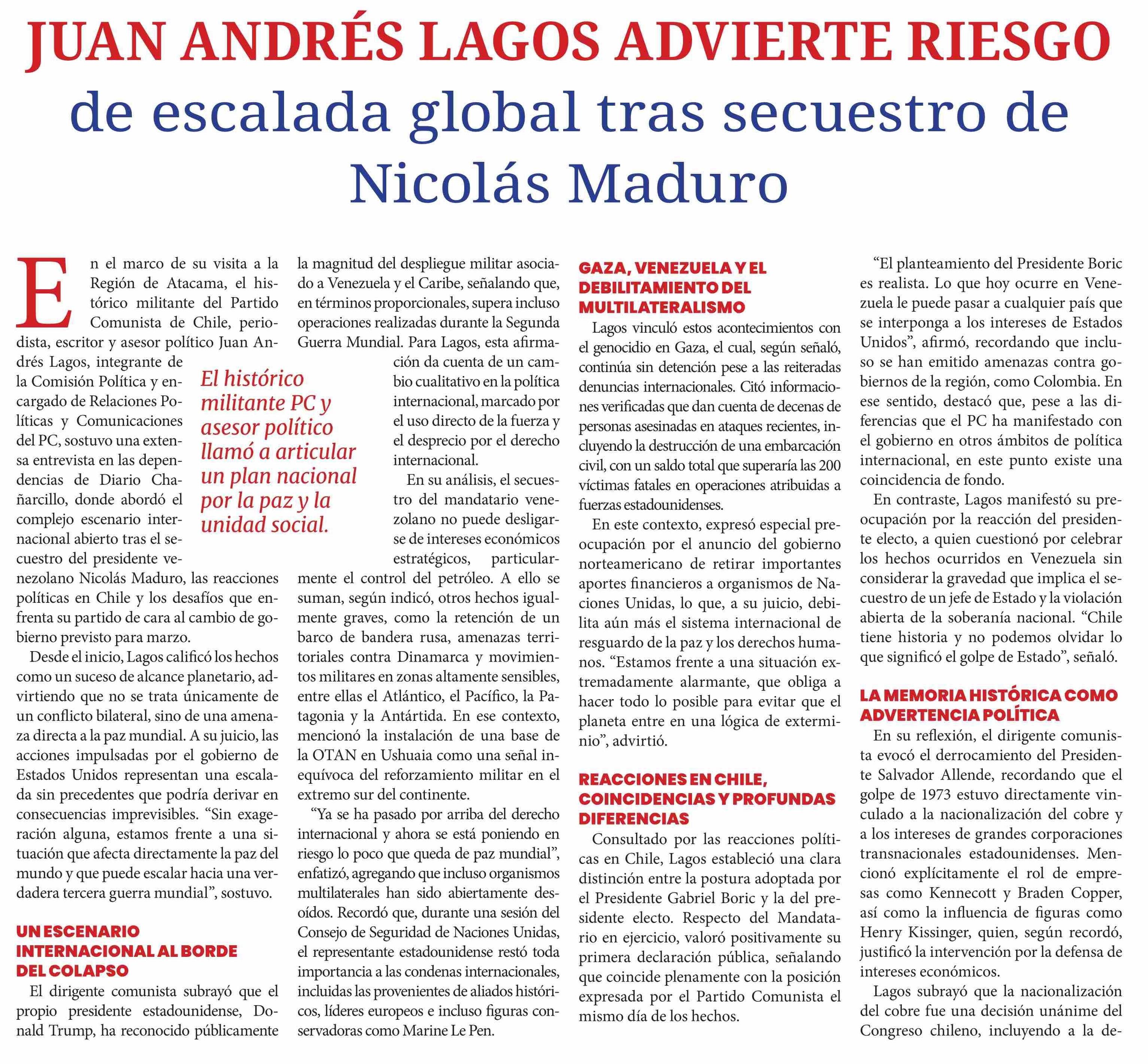 JUAN ANDRÉS LAGOS ADVIERTE RIESGO de escalada global tras secuestro de Nicolás Maduro 10-01-2026 Diario Chañarcillo |