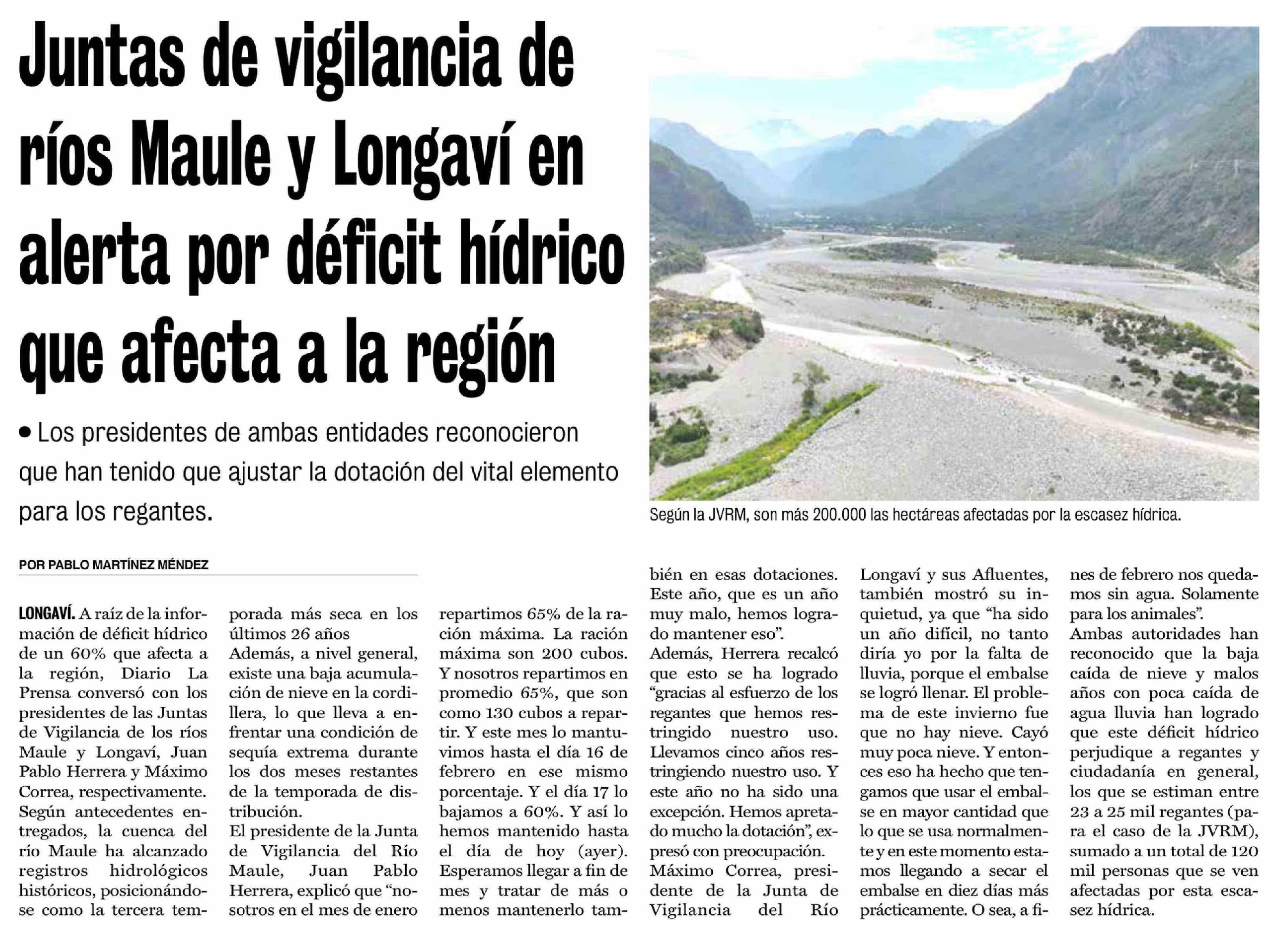 Título: Juntas de vigilancia de ríos Maule y Longaví en alerta por déficit hídrico que afecta a la región