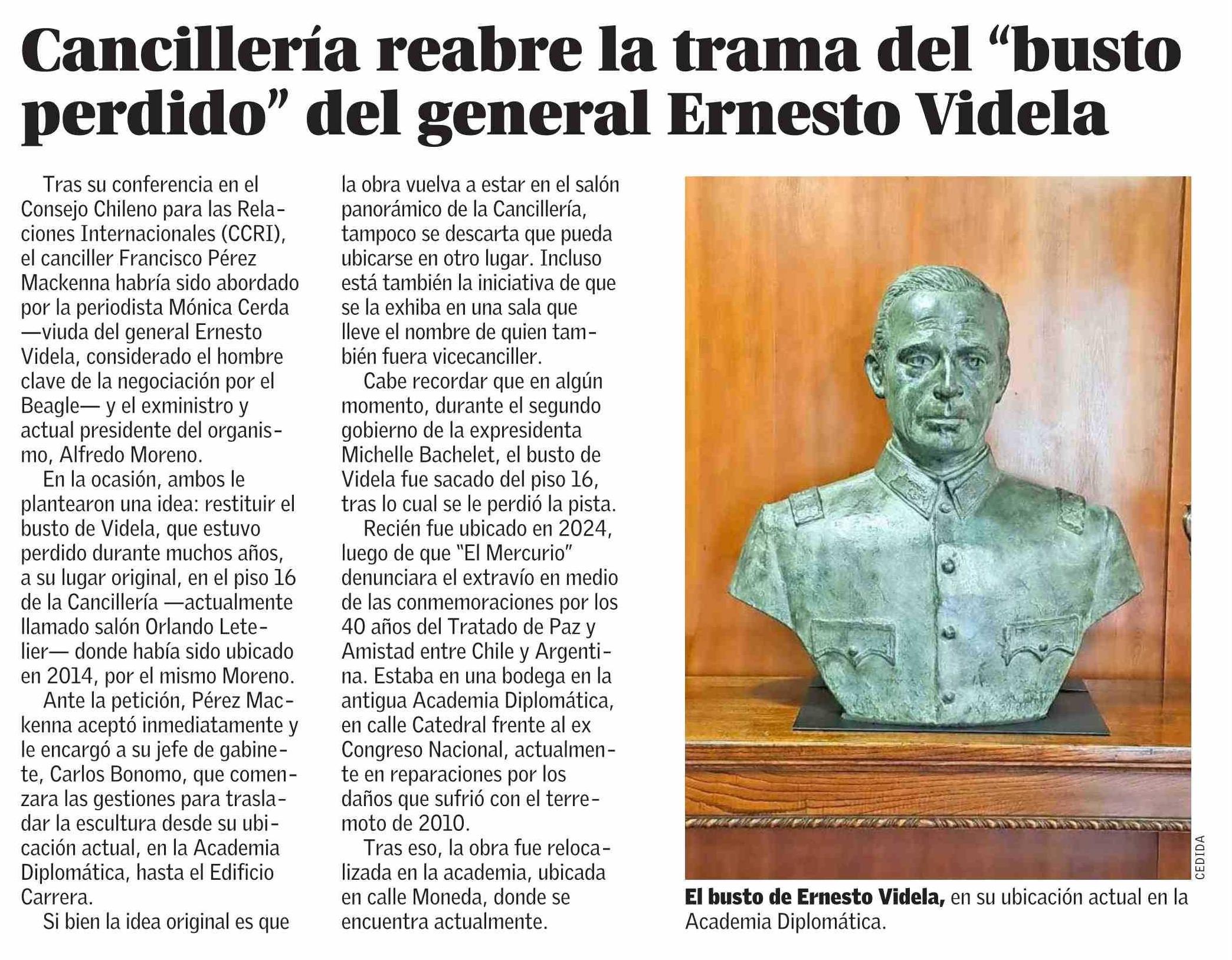 Cancillería reabre la trama del “busto perdido” del general Ernesto Videla 05-04-2026 El Mercurio |