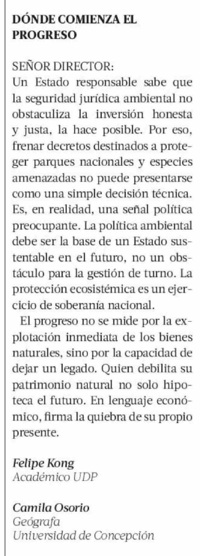 Título: Cartas: DÓNDE COMIENZA EL PROGRESO