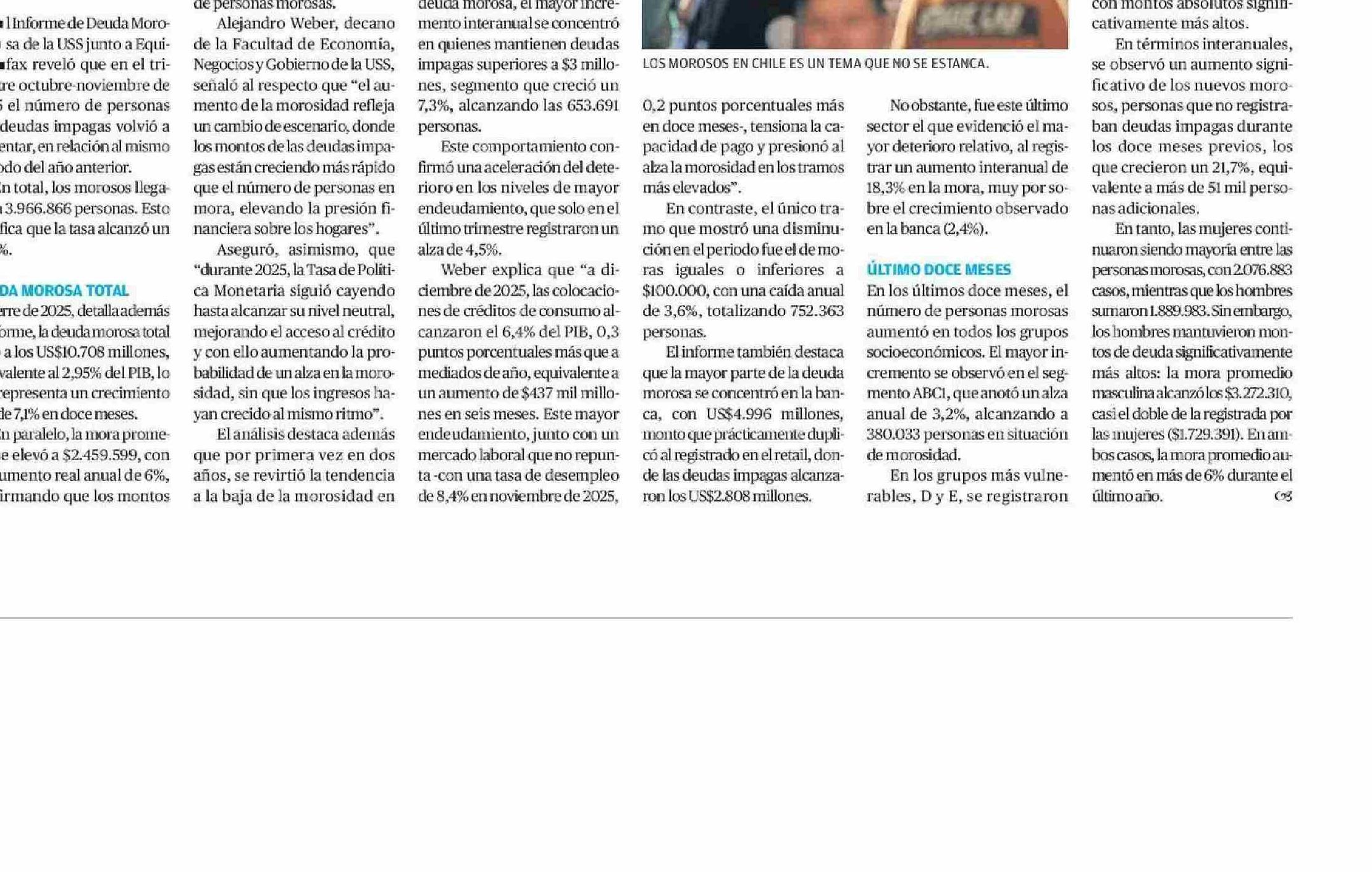 | Título: | Morosos en Chile aumentan al cierre de 2025 y superan el 25% de los mayores de 18 años |