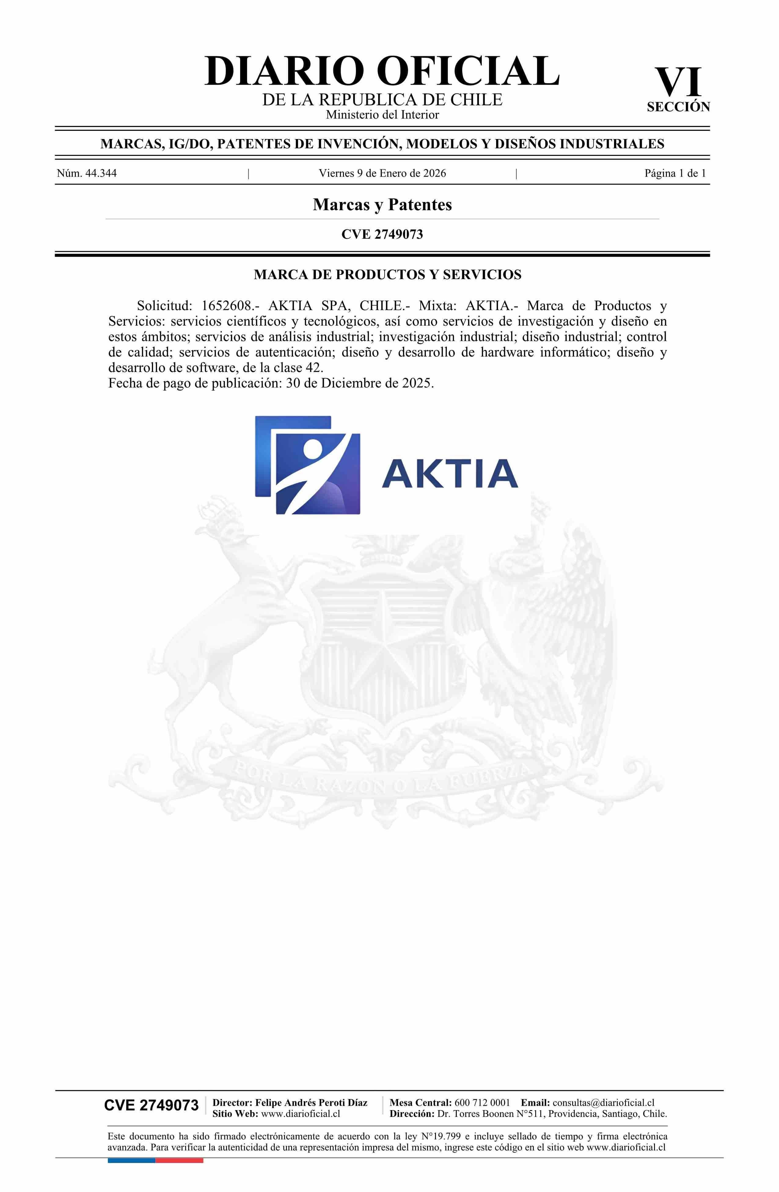 Solicitud número 1652608.- AKTIA 09-01-2026 Diario Oficial Edición Electrónica |