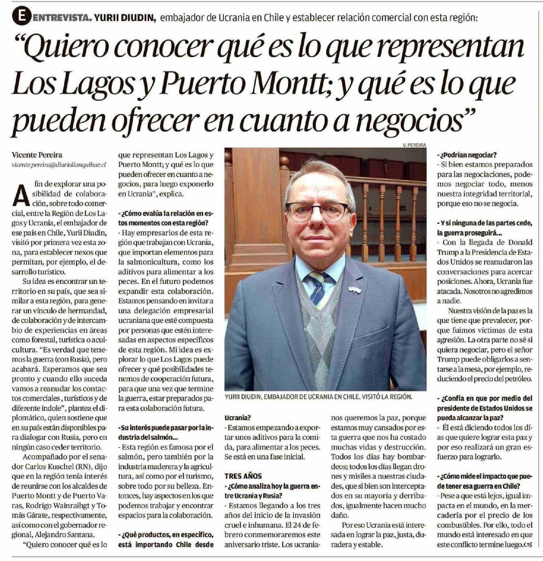 “Quiero conocer qué es lo que representan pueden ofrecer en cuanto a negocios” Los Lagos y Puerto Montt; y qué es lo que 29-01-2025 El Llanquihue |
