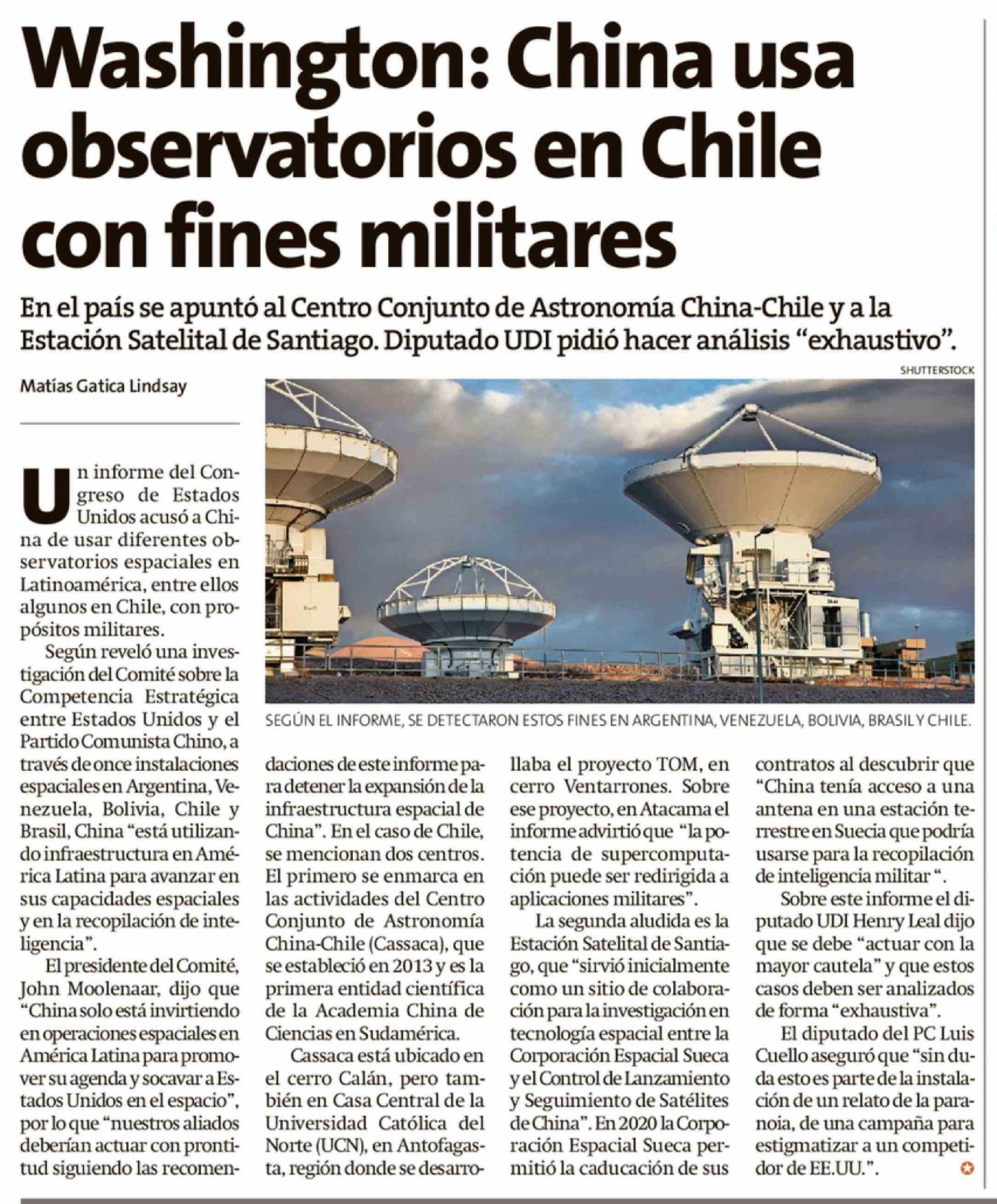Título: Washington: China usa observatorios en Chile con fines militares