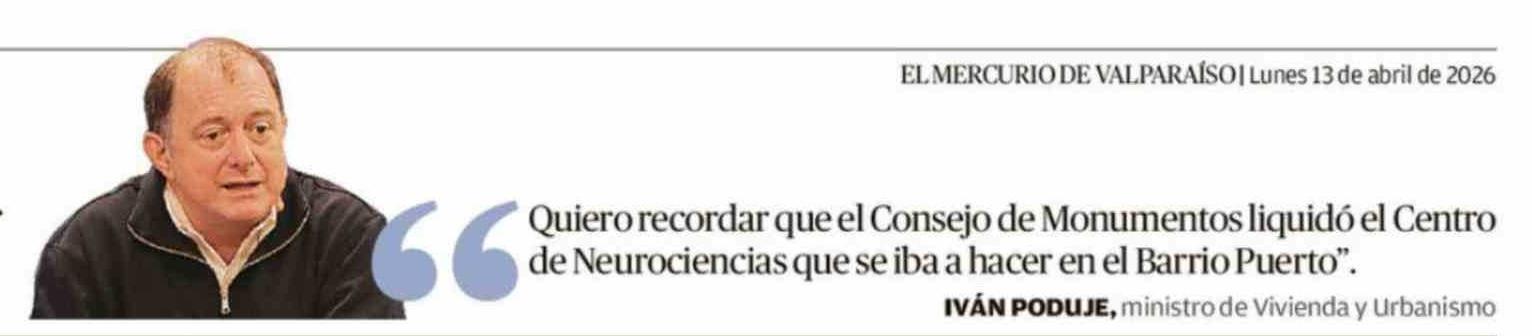 Título: Quiero recordar que el Consejo de Monumentos liquidó el Centro de Neurociencias que se iba a hacer en el Barrio Puerto". IVÁN PODUJE, ministro de Vivienda y Urbanismo