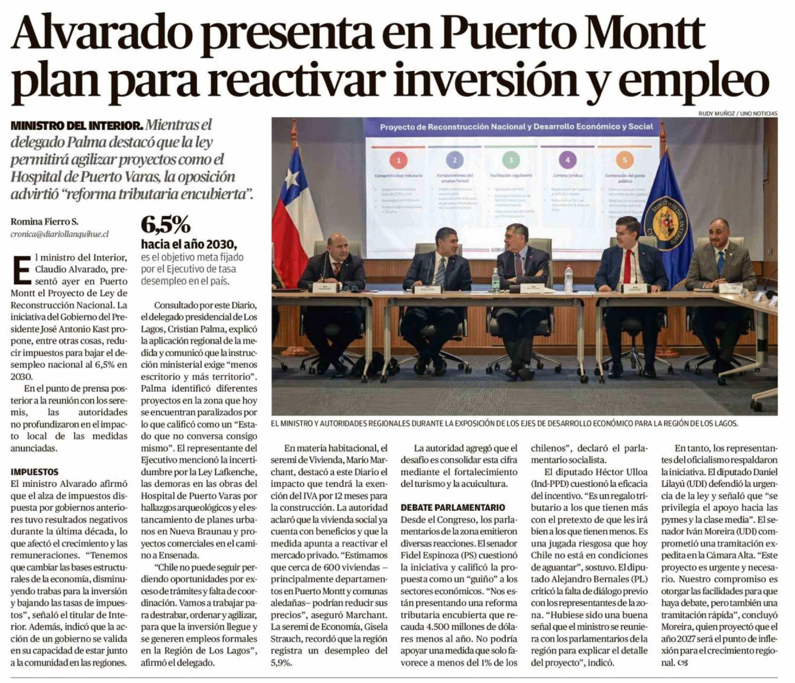Título: Alvarado presenta en Puerto Montt plan para reactivar inversión y empleo