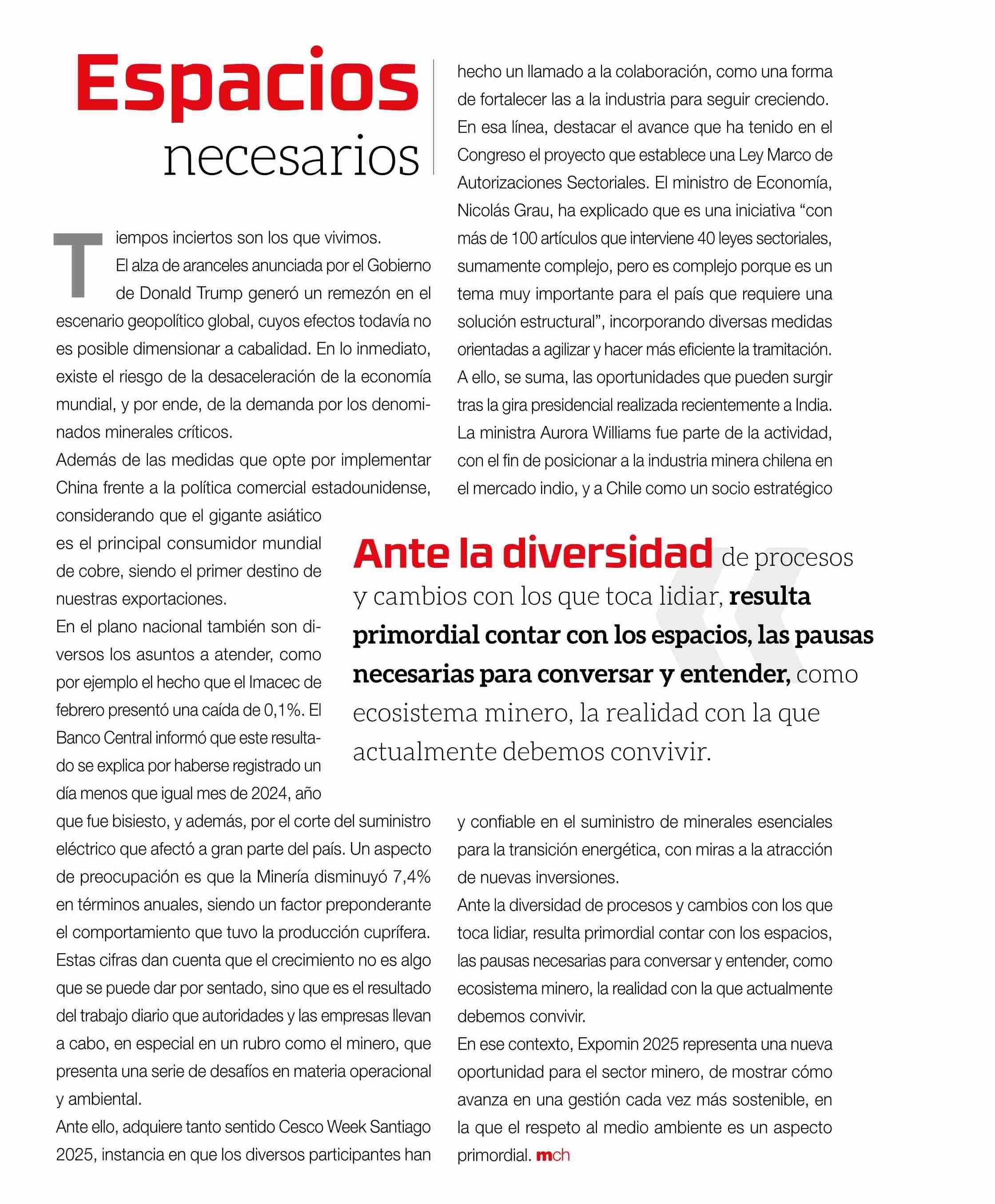Espacios necesarios 15-04-2025 Revista Minería Chilena |