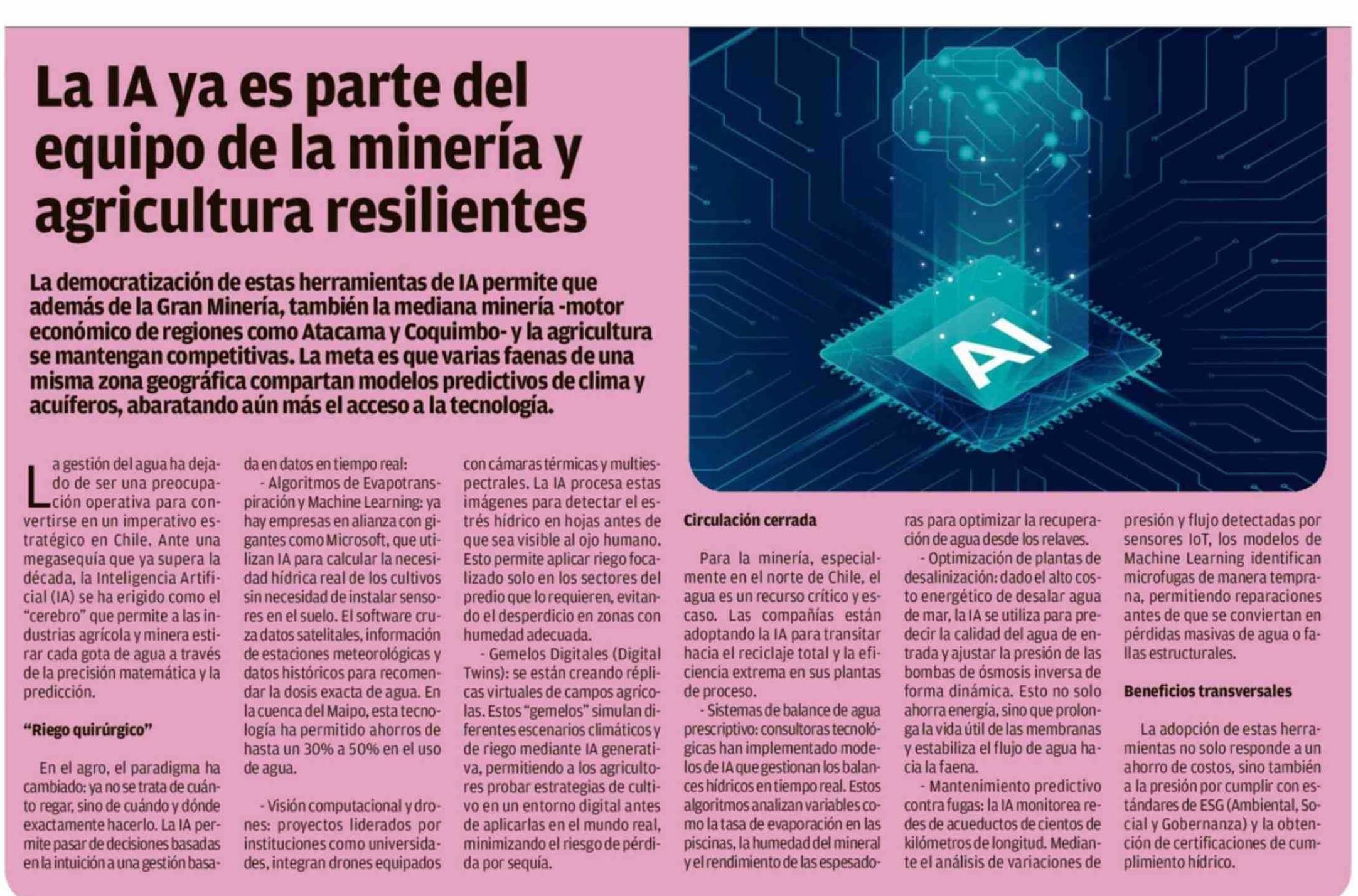 La IA ya es parte del equipo de la minería y agricultura resilientes 31-03-2026 El Sur |
