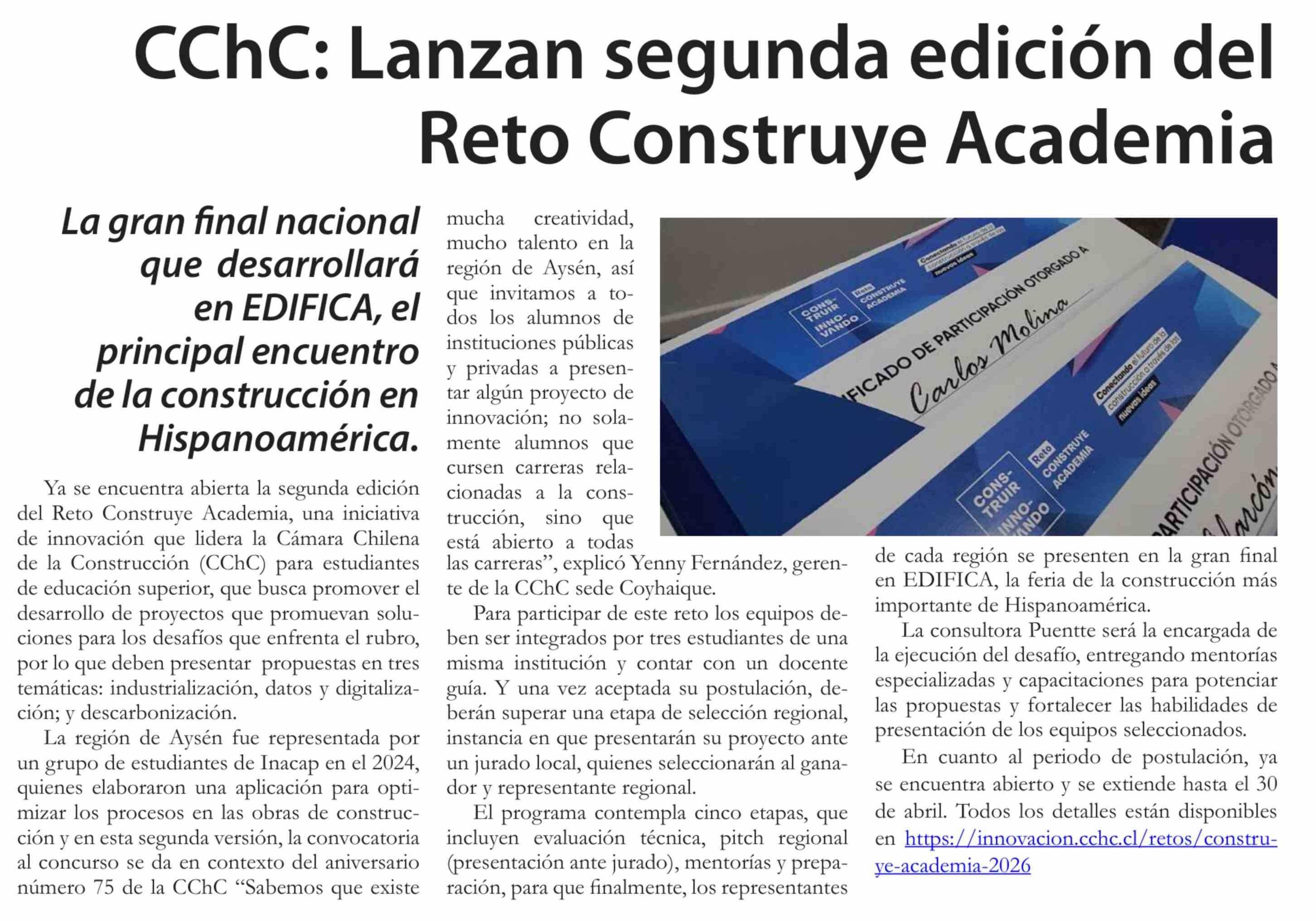 Título: CChC: Lanzan segunda edición del Reto Construye Academia
