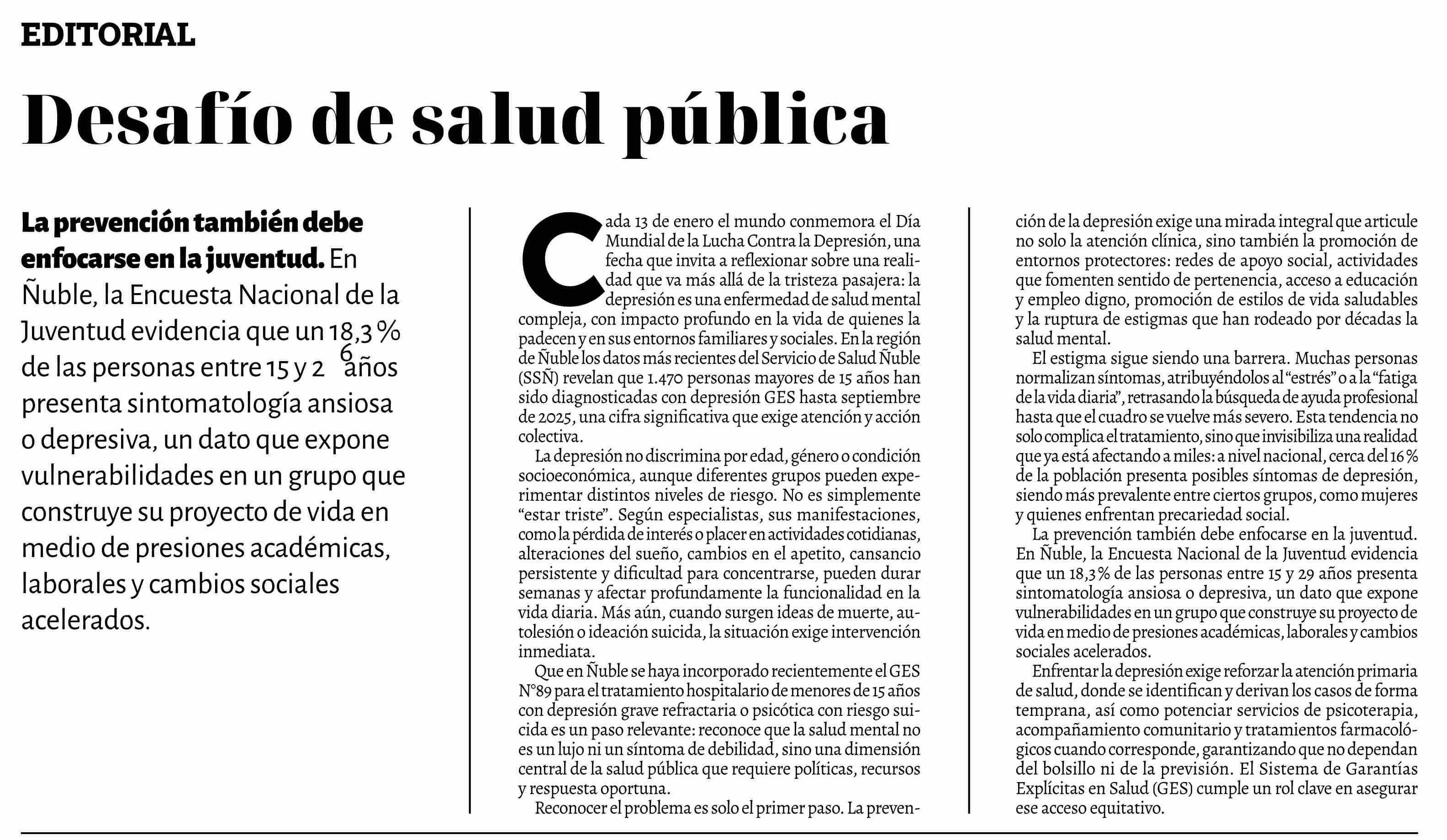 Editorial: Desafío de salud pública 13-01-2026 La Discusión |