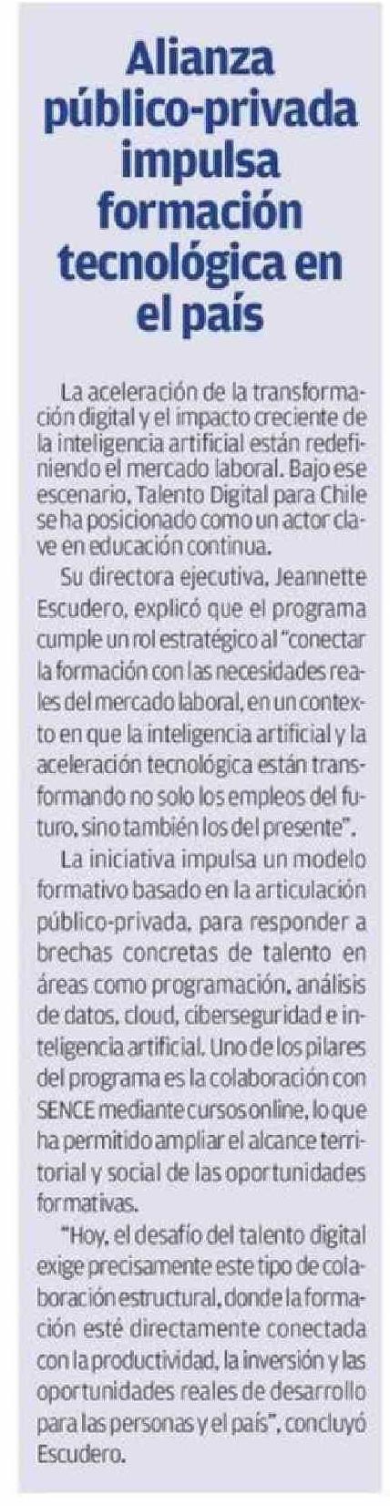 Alianza público-privada impulsa formación tecnológica en el país 25-04-2026 El Sur |