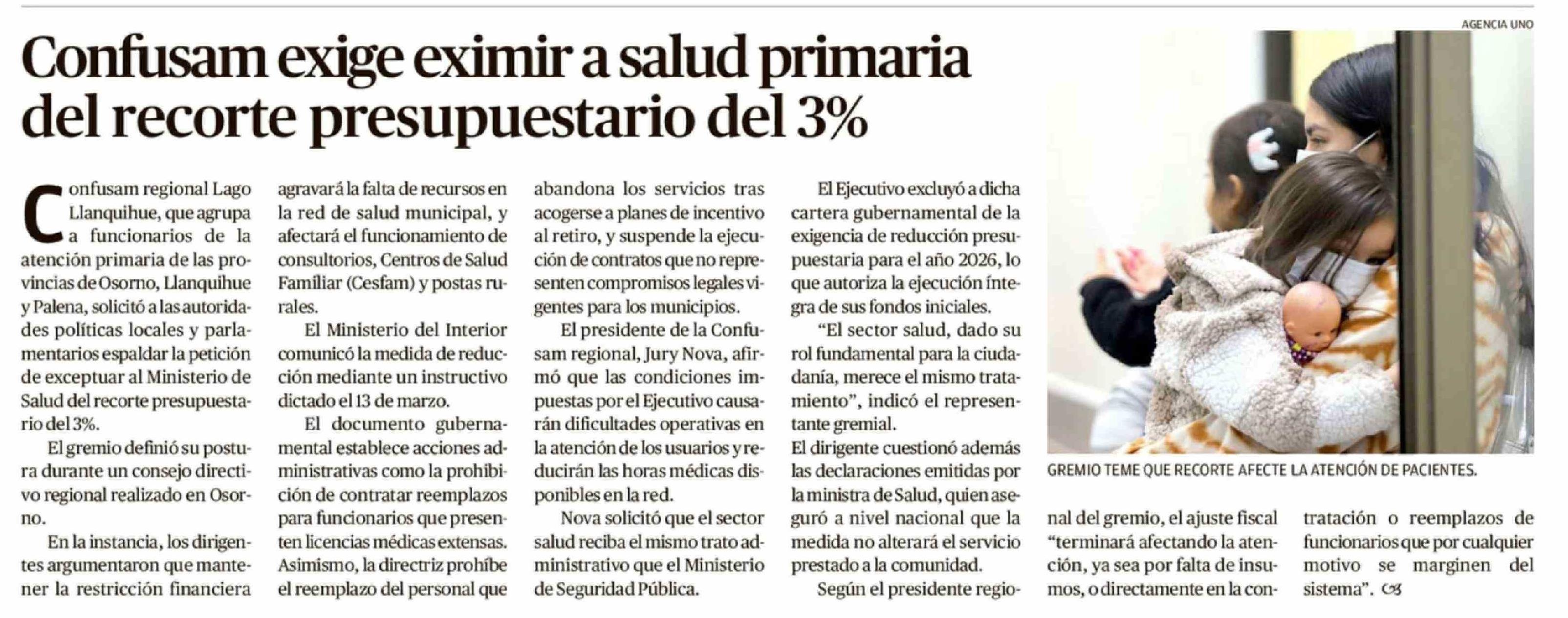 Título: Confusam exige eximir a salud primaria del recorte presupuestario del 3%