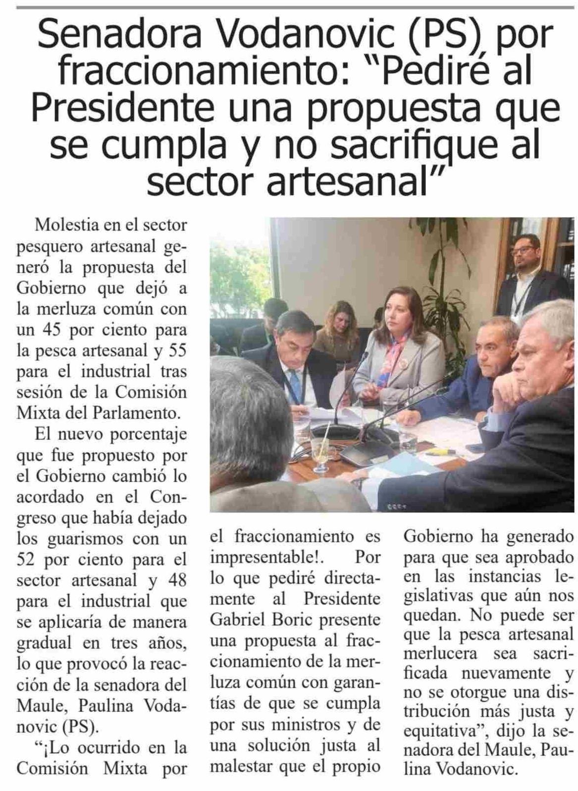 Senadora Vodanovic (PS) por fraccionamiento: *Pediré al Presidente una propuesta que se cumpla y no sacrifique al sector artesanal” 07-06-2025 El Heraldo |