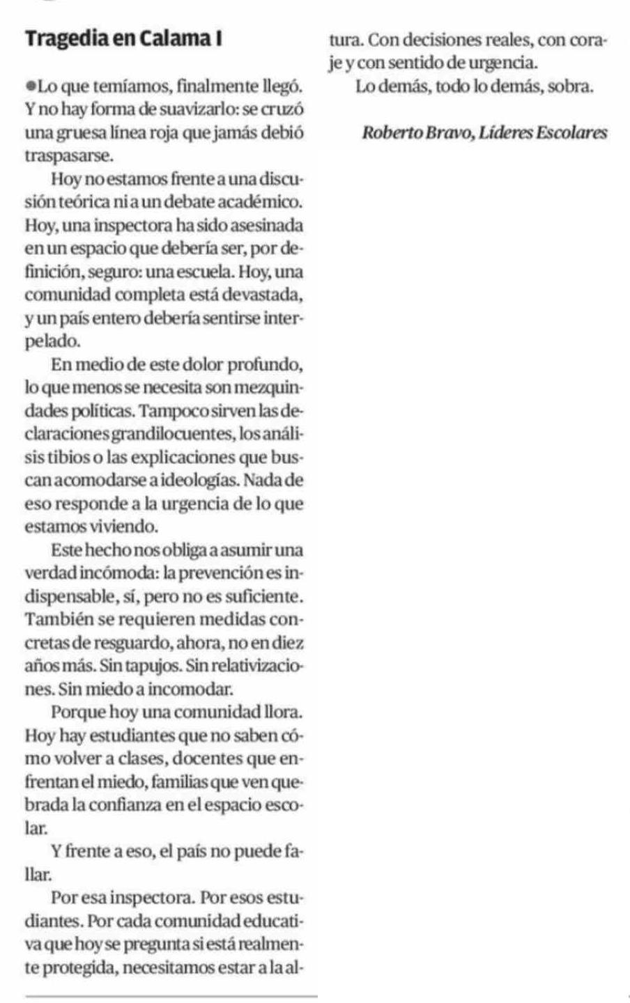 Cartas: Tragedia en Calama I 31-03-2026 El Diario de Atacama |