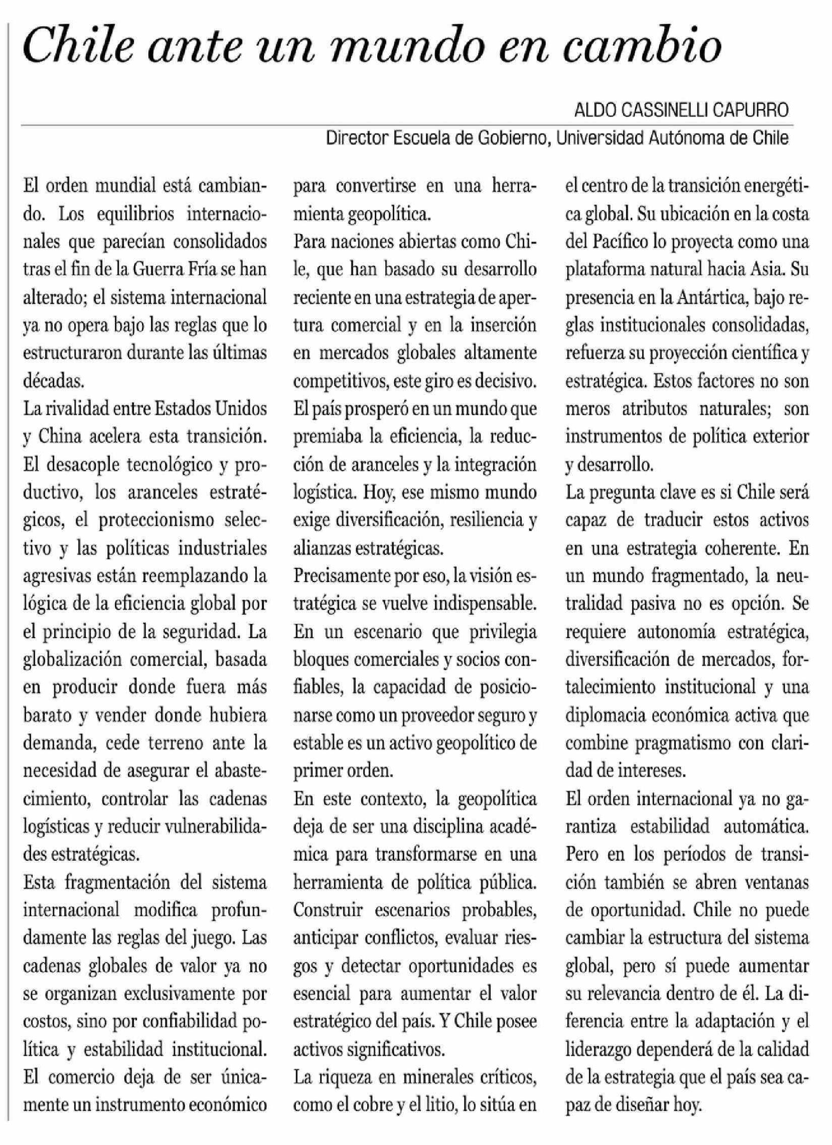 Cartas: Chile ante un mundo en cambio