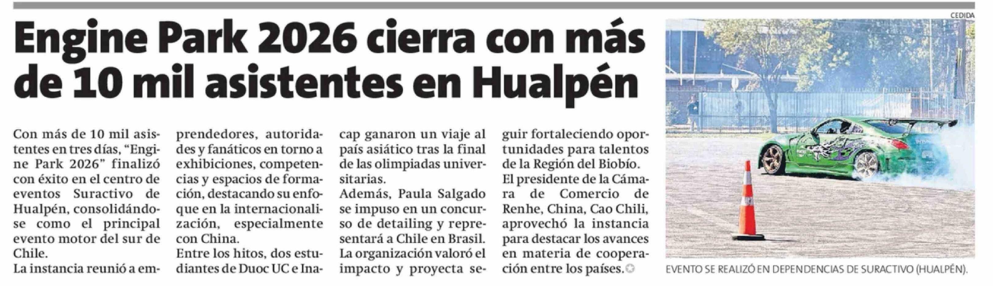 Título: Engine Park 2026 cierra con más de 10 mil asistentes en Hualpén
