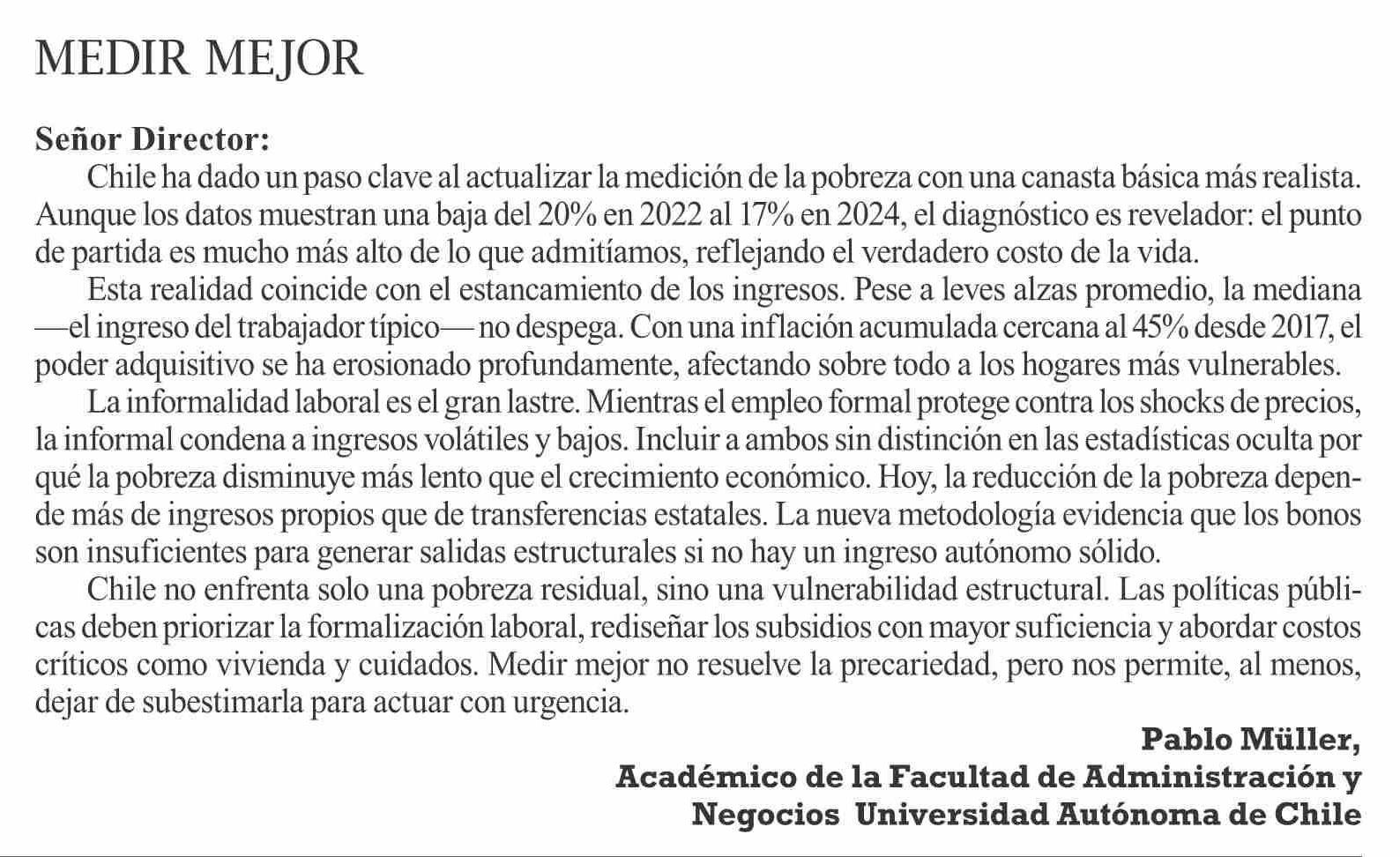 Cartas: MEDIR MEJOR 15-01-2026 El Pingüino |