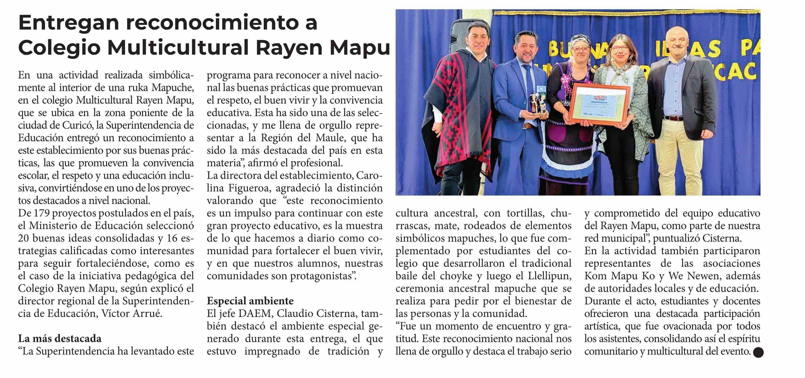 Título: Entregan reconocimiento a Colegio Multicultural Rayen Mapu