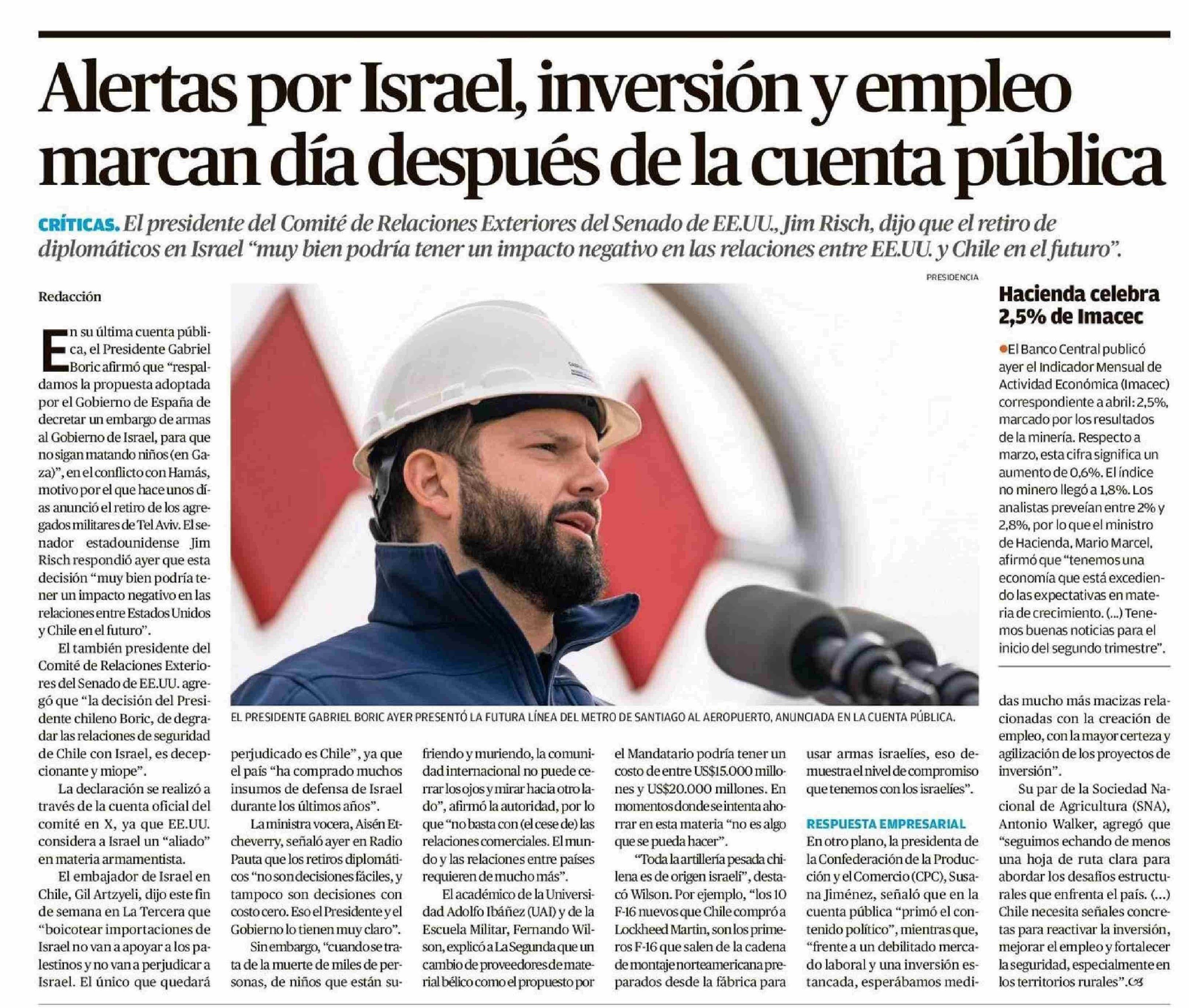 Alertas por Israel, inversión y empleo marcan día después de la cuenta pública 03-06-2025 Diario Austral Región de Los Ríos |