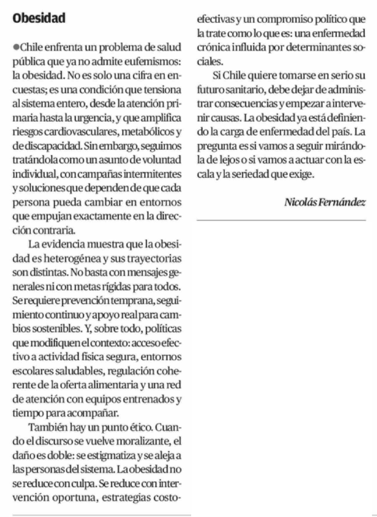 Cartas: Obesidad 10-02-2026 El Mercurio de Antofagasta |