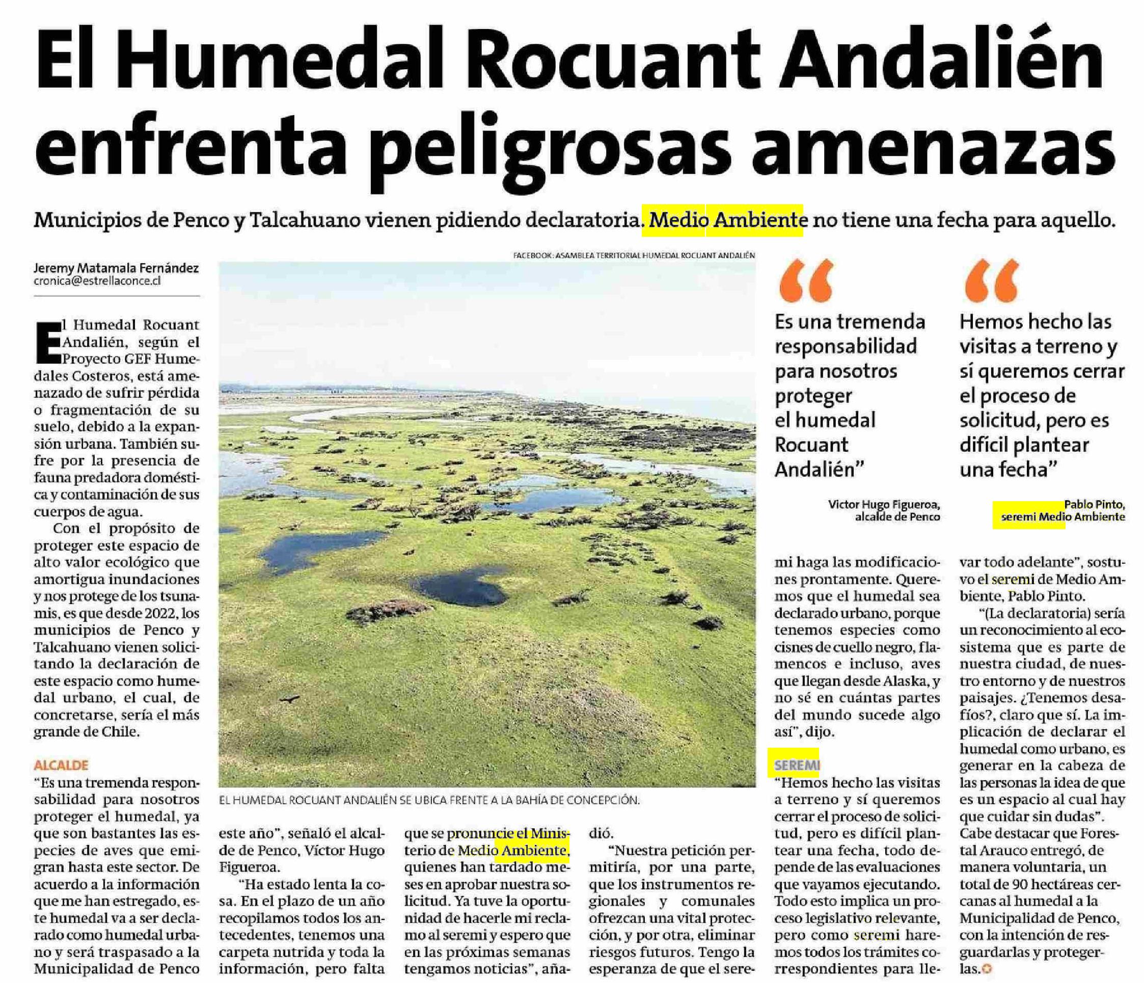 El Humedal Rocuant Andalién enfrenta peligrosas amenazas 14-02-2024 La Estrella de Concepción |
