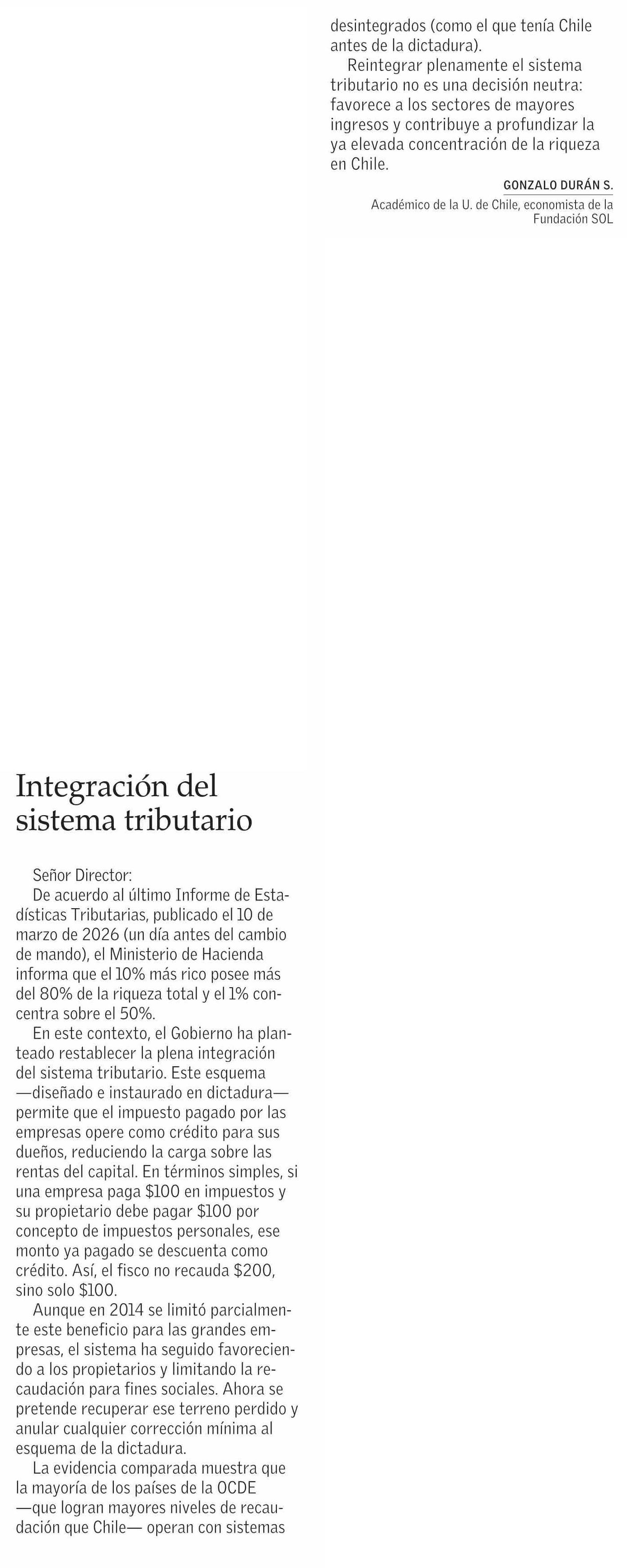 Título: Cartas: Integración del sistema tributario