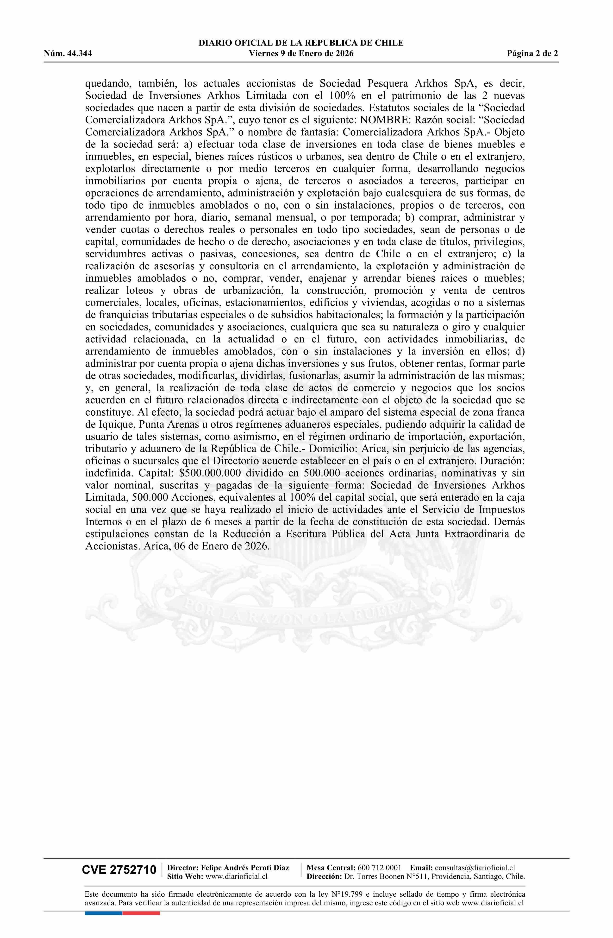 Título: SOCIEDAD COMERCIALIZADORA ARKHOS SpA
