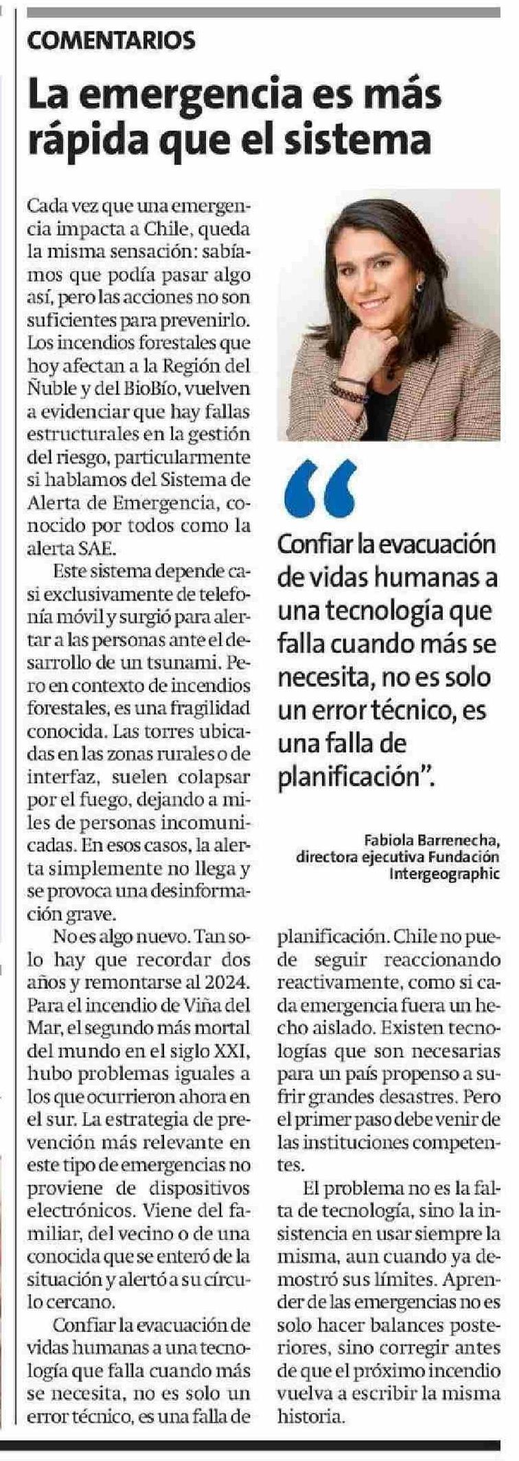 Columnas de Opinión: La emergencia es más rápida que el sistema 21-01-2026 La Estrella de Iquique |