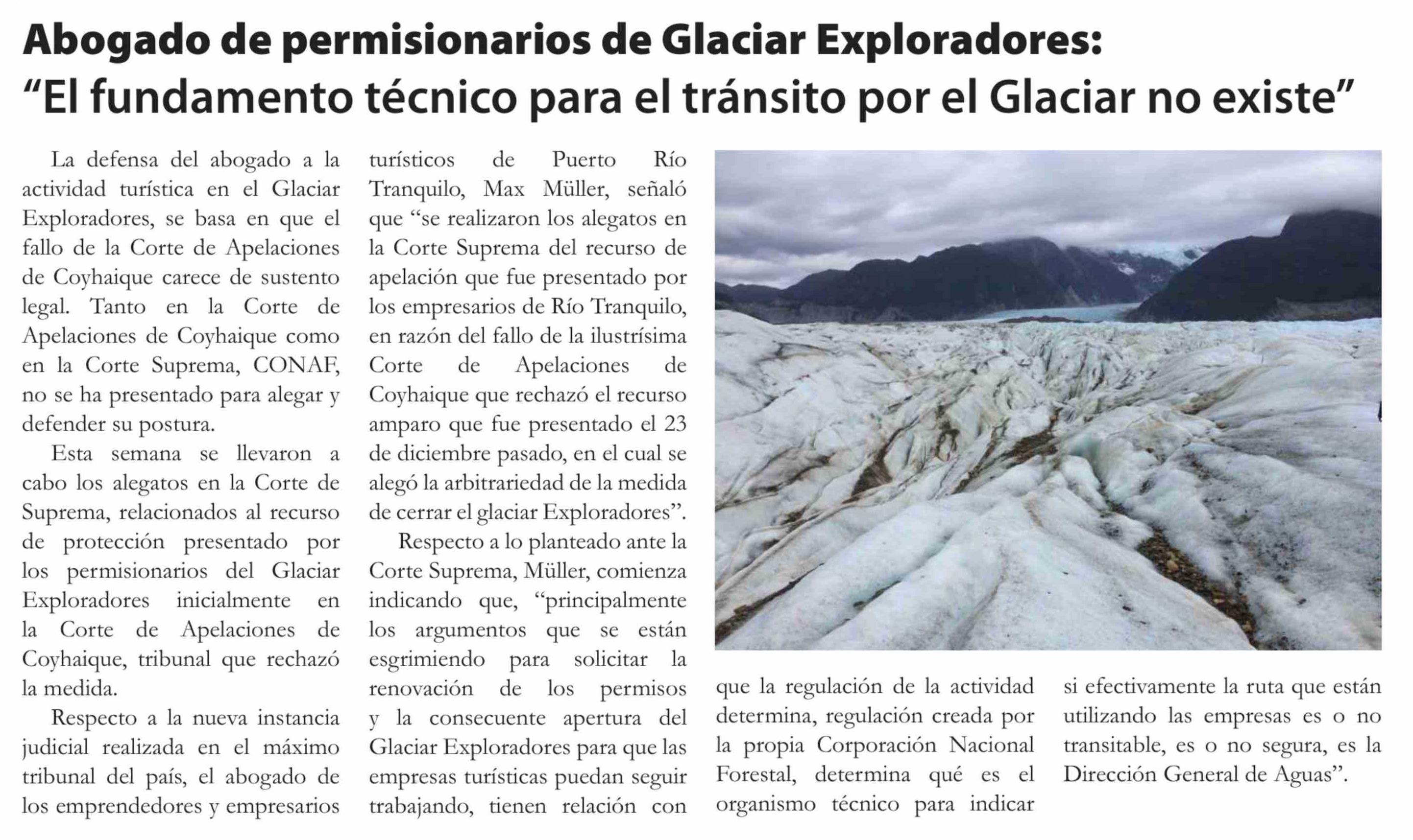 Título: Abogado de permisionarios de Glaciar Exploradores: "El fundamento técnico para el tránsito por el Glaciar no existe"