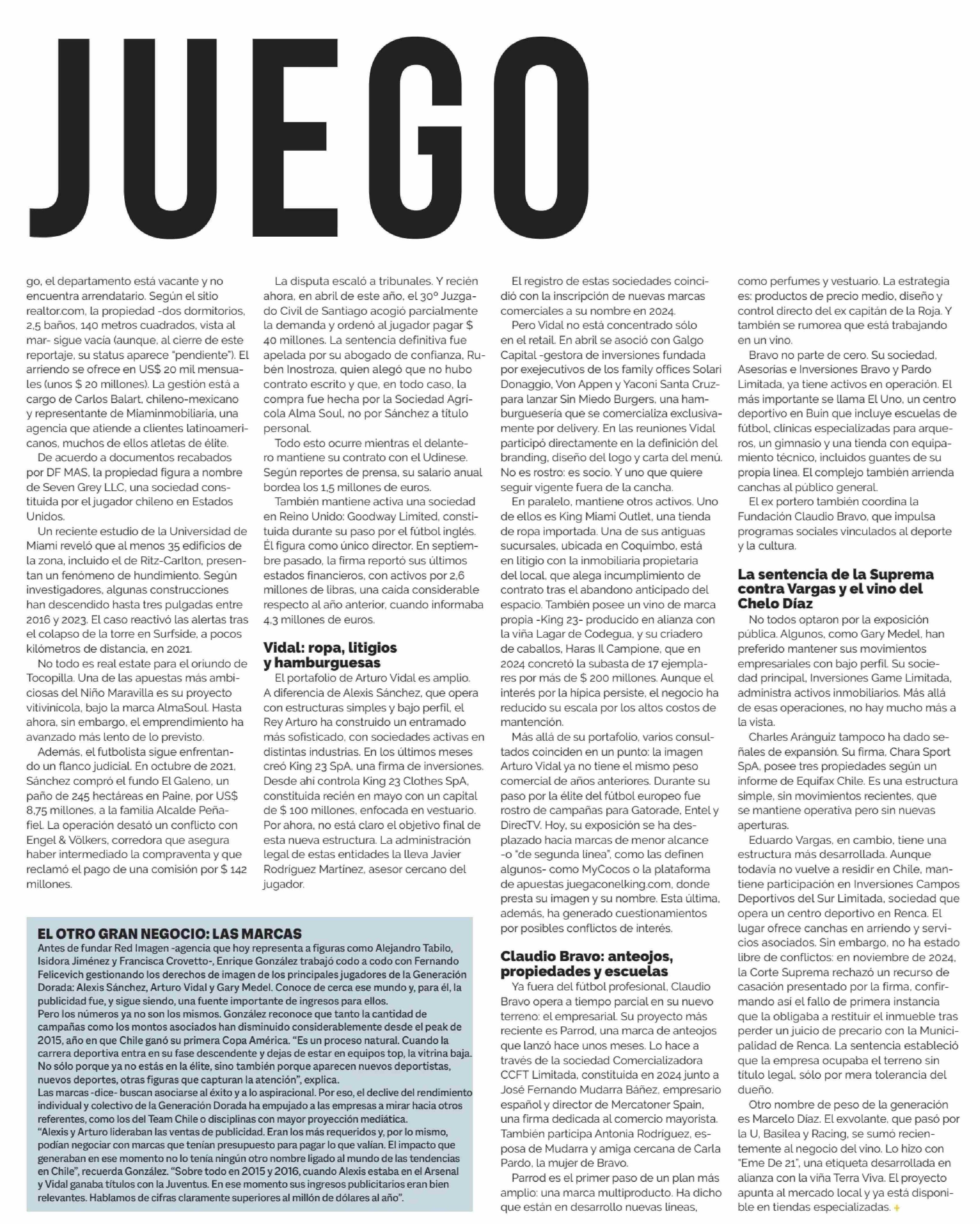 FUERA DE JUEGO LOS NEGOCIOS DE LA GENERACIÓN DORADA 22-06-2025 Diario Financiero |