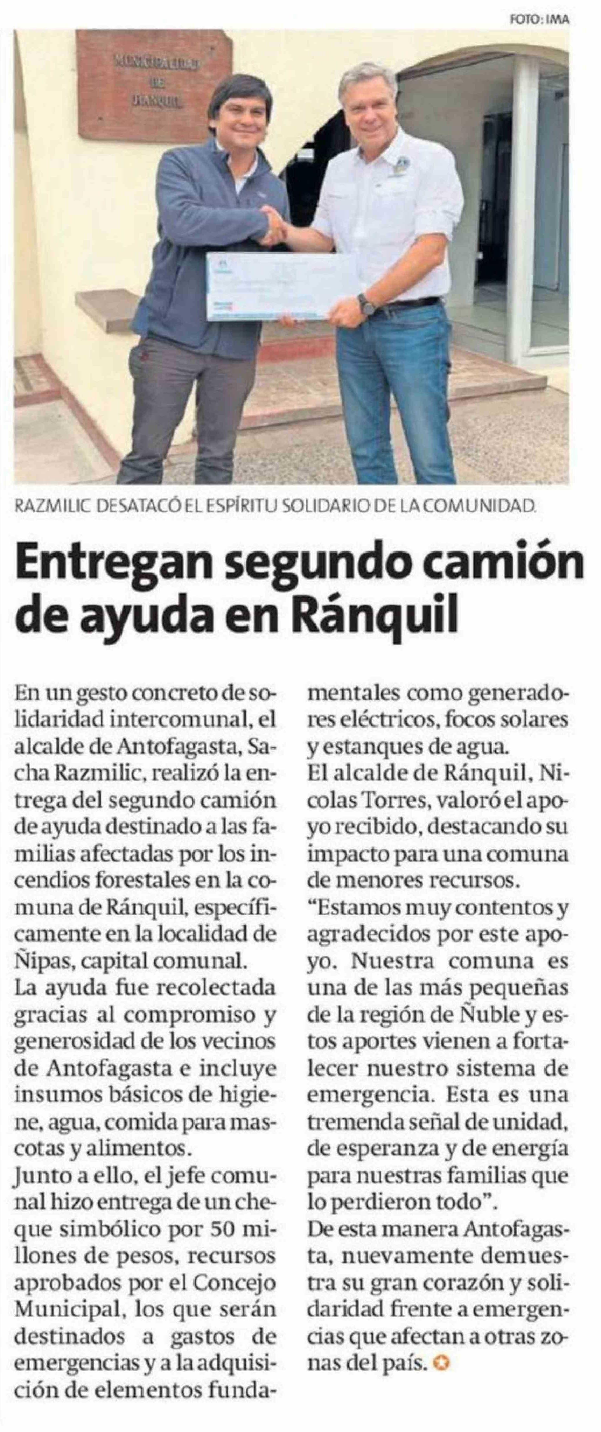 Entregan segundo camión de ayuda en Ránquil 02-02-2026 La Estrella de Antofagasta |