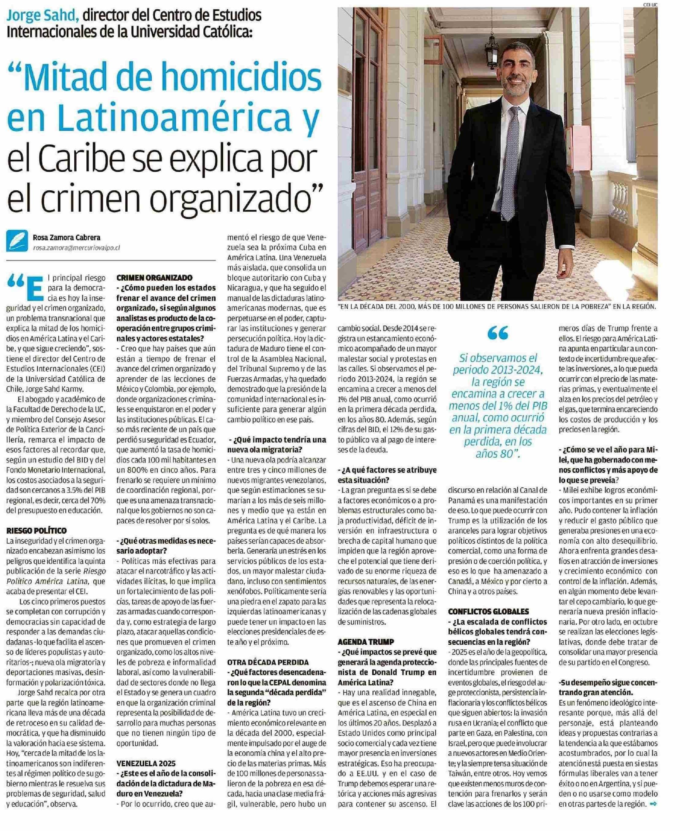 “Mitad de homicidios en Latinoamérica y el Caribe se explica por el crimen organizado” 19-01-2025 El Mercurio de Valparaíso |