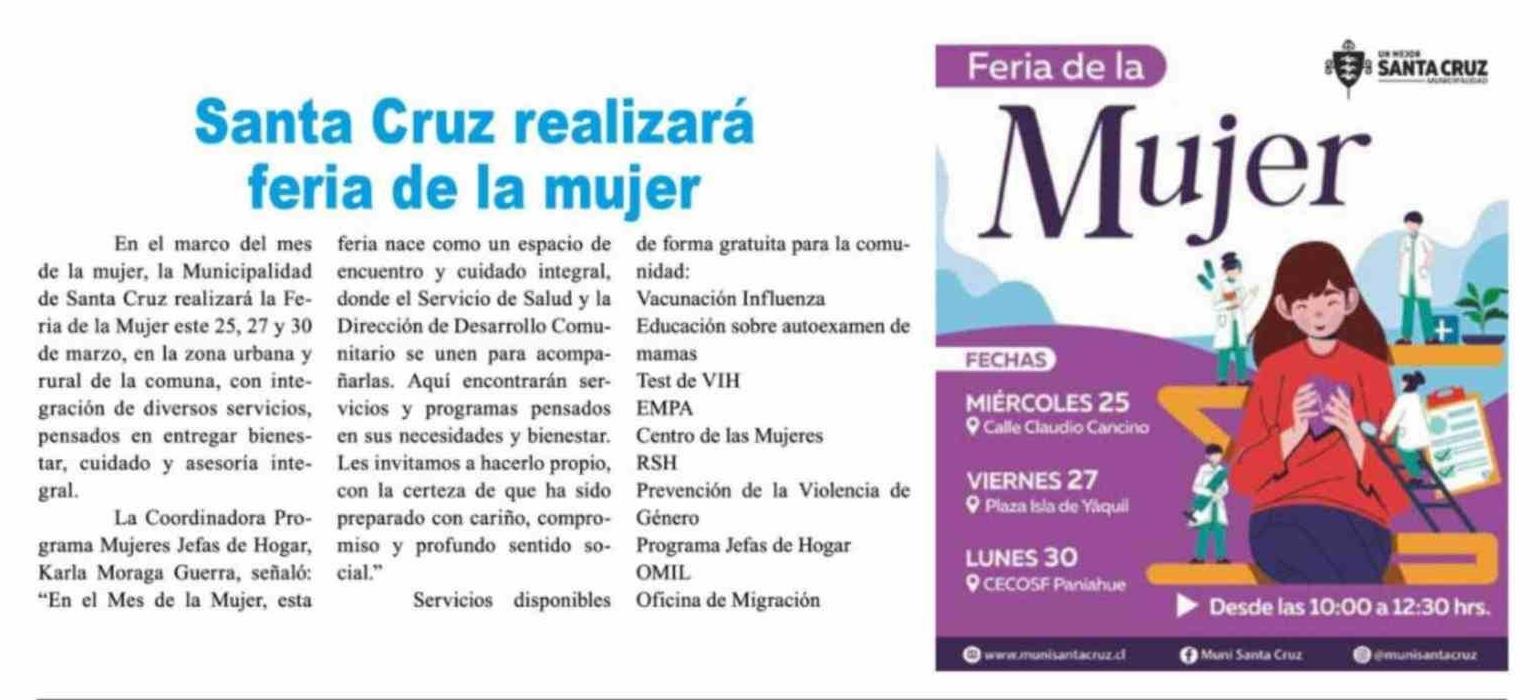 Santa Cruz realizará feria de la mujer 25-03-2026 Diario VI Región |