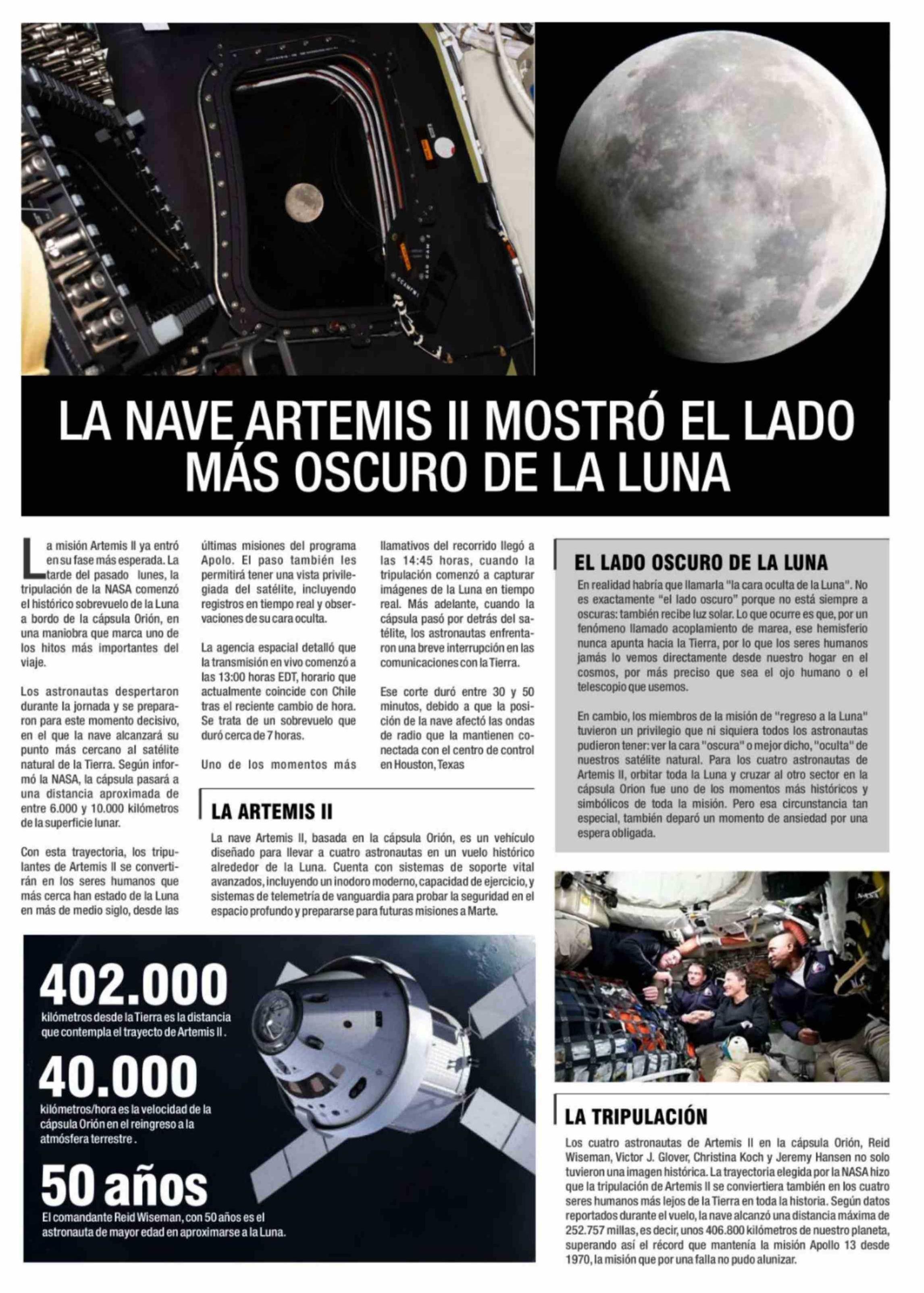 Título: LA NAVE ARTEMIS II MOSTRÓ EL LADO MÁS OSCURO DE LA LUNA