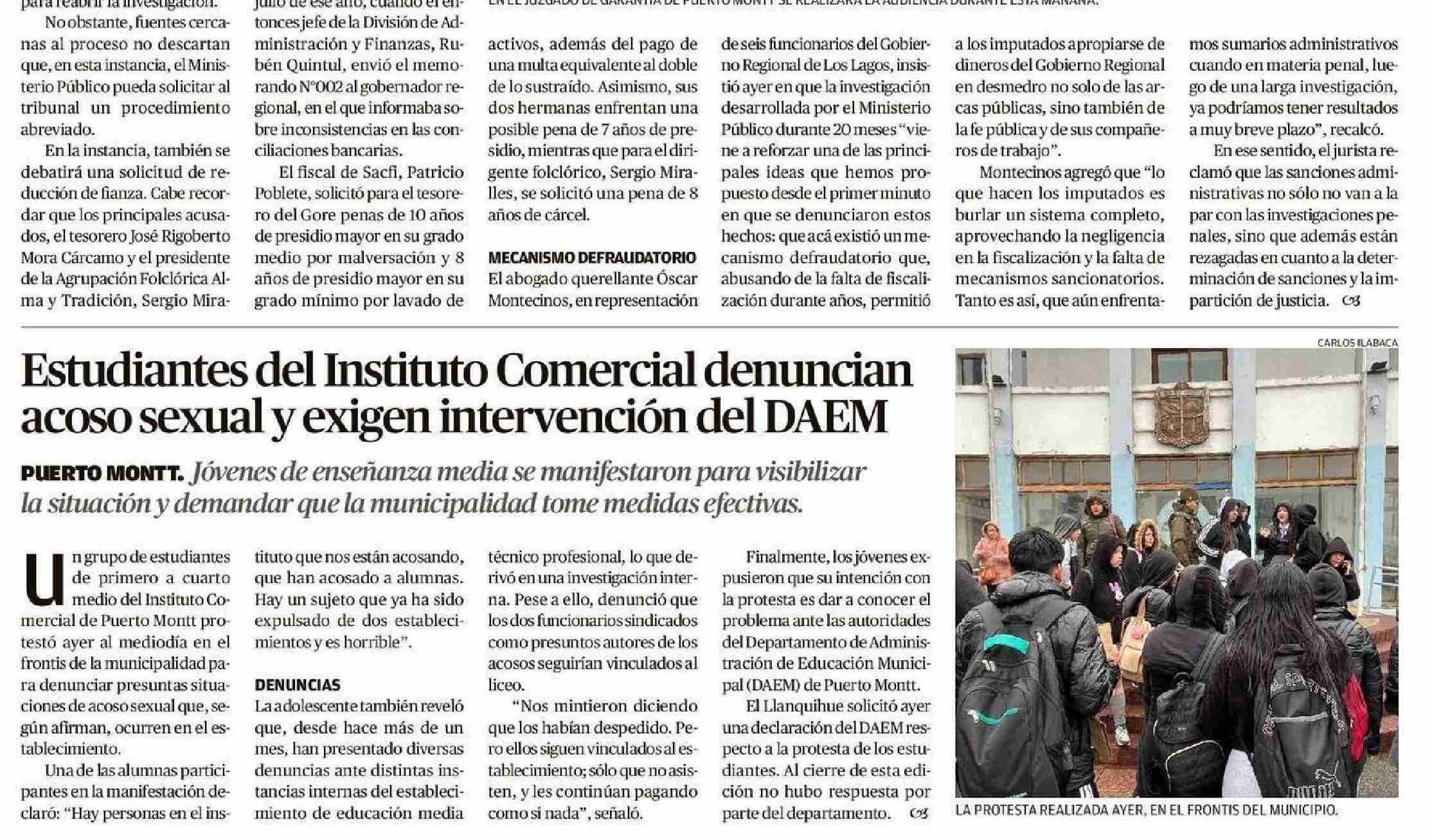 Estudiantes del Instituto Comercial denuncian acoso sexual y exigen intervención del DAEM 04-06-2025 El Llanquihue |
