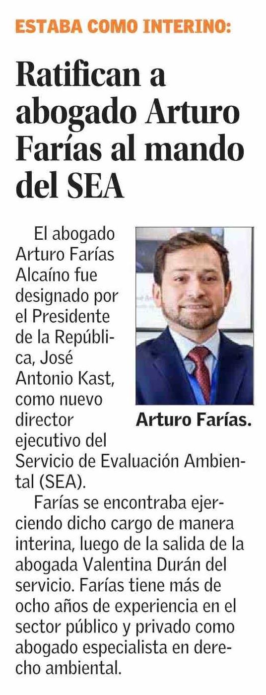 Ratifican a abogado Arturo Farías al mando del SEA 07-04-2026 El Mercurio |