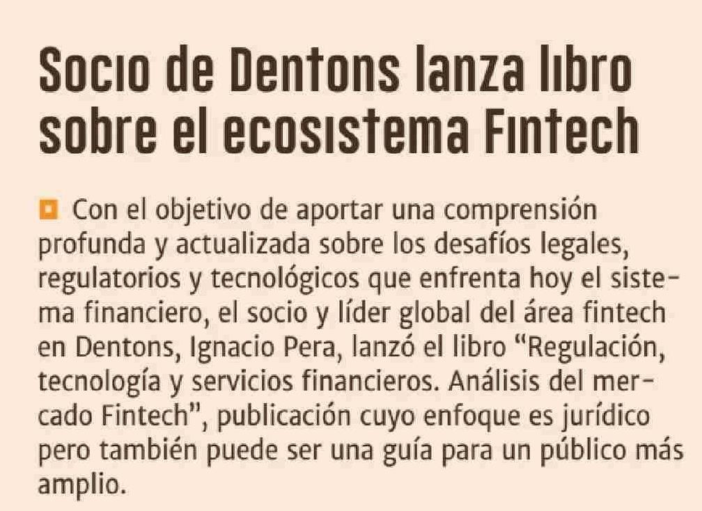 | Título: | Socio de Dentons lanza libro sobre el ecosistema Fintech |