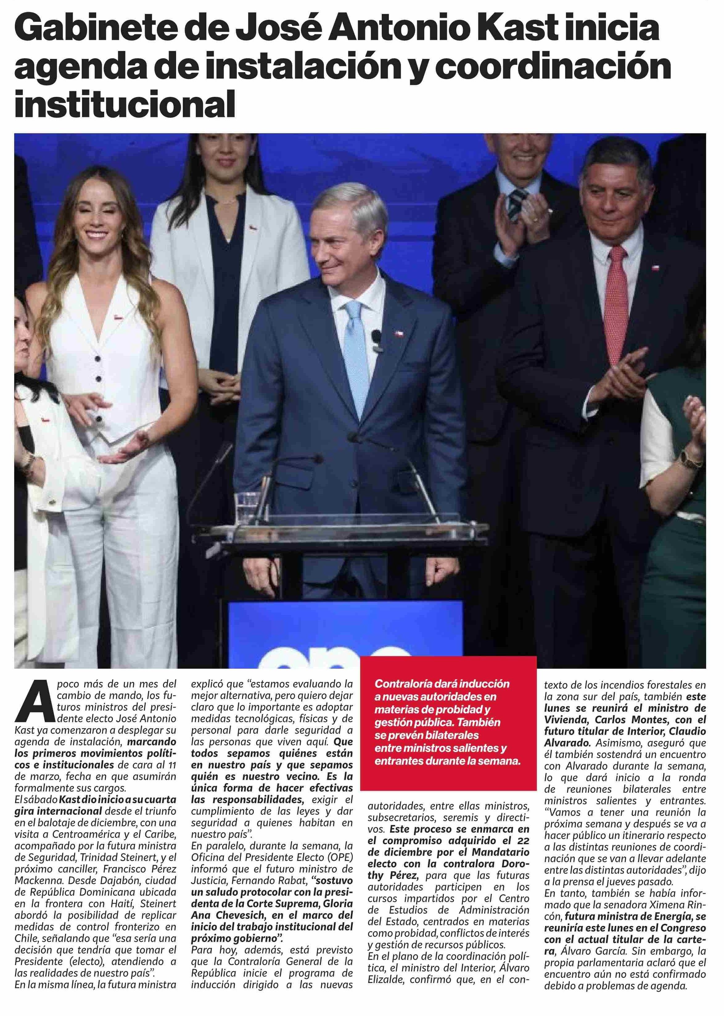 Título: Gabinete de José Antonio Kast inicia agenda de instalación y coordinación institucional