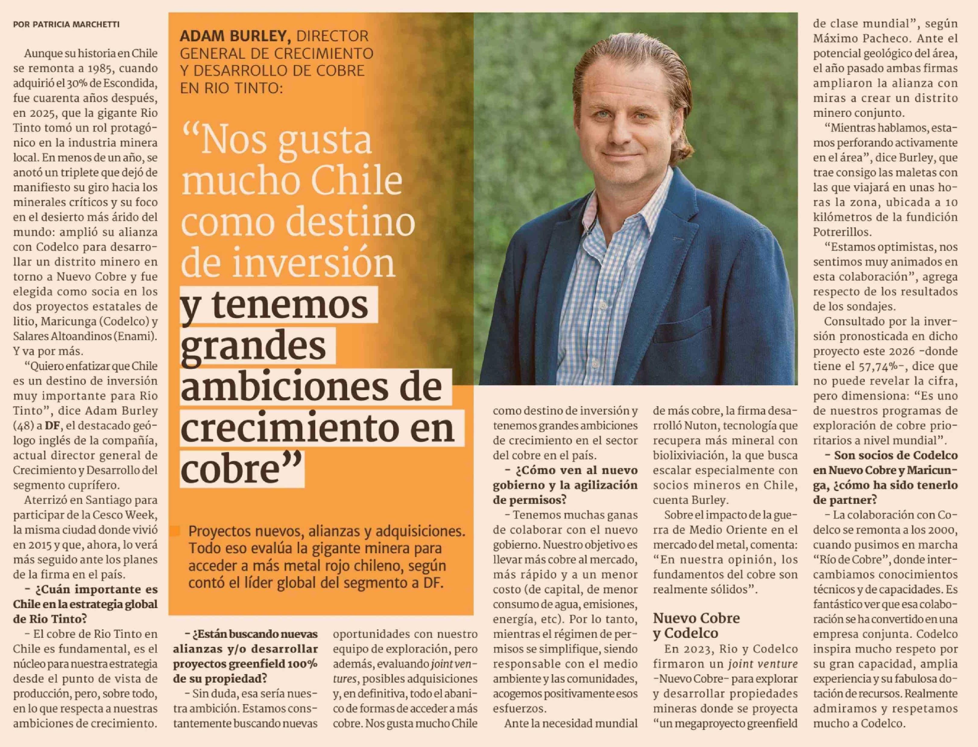 Título: "Nos gusta mucho Chile como destino de inversión y tenemos grandes ambiciones de crecimiento en cobre"