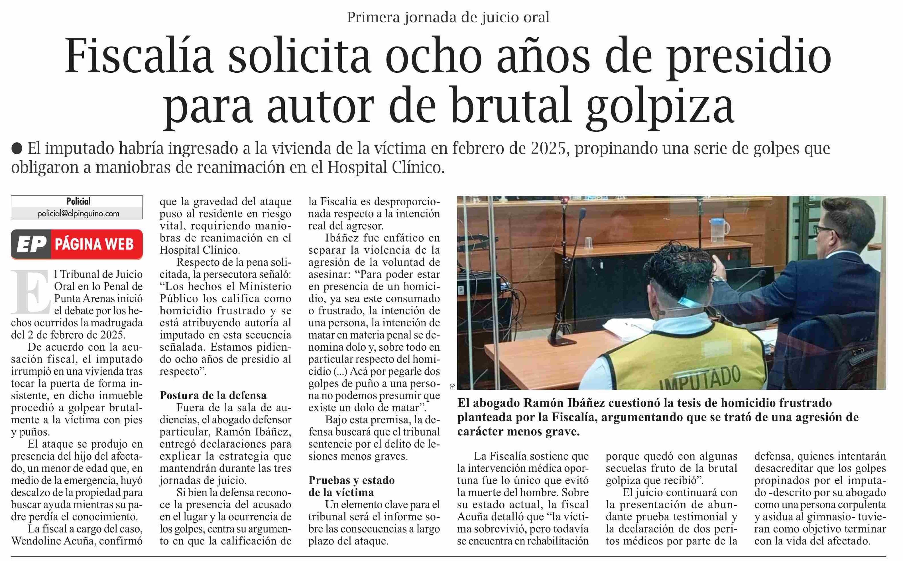 Título: Fiscalía solicita ocho años de presidio para autor de brutal golpiza