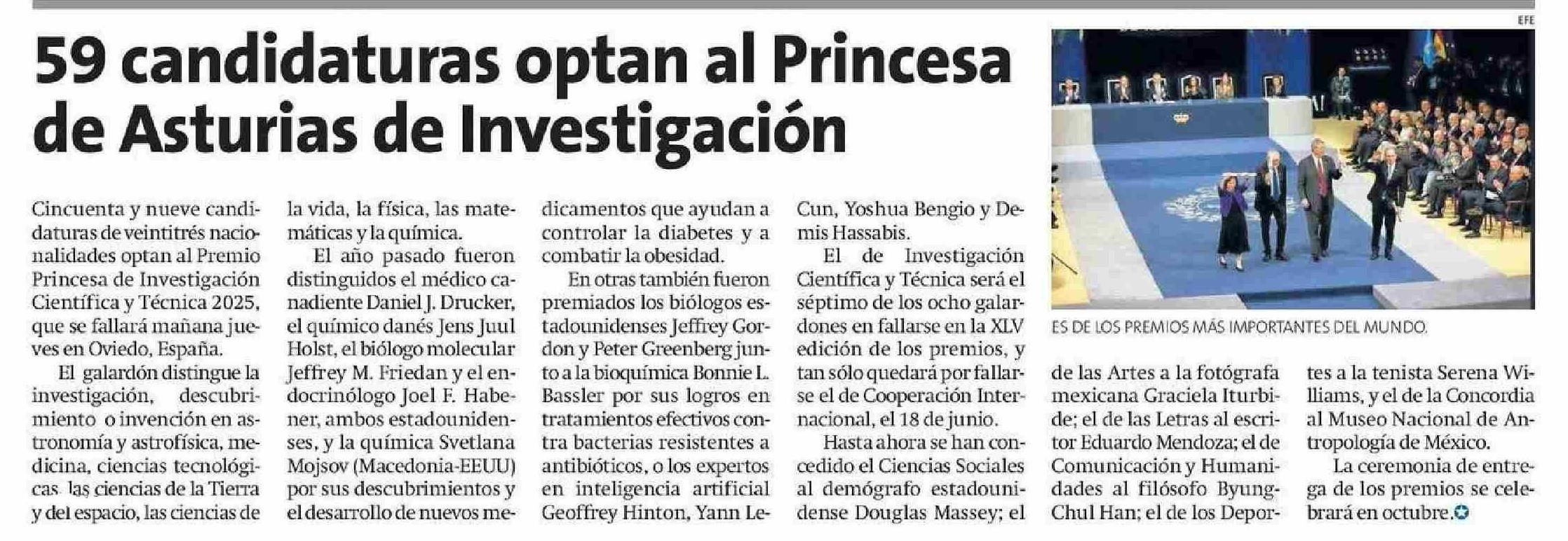 59 Candidaturas optan al Princesa de Asturias de Investigación 11-06-2025 La Estrella de Arica |
