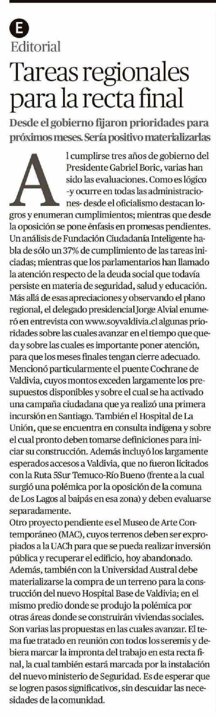 Tareas regionales para la recta final 13-03-2025 Diario Austral Región de Los Ríos |