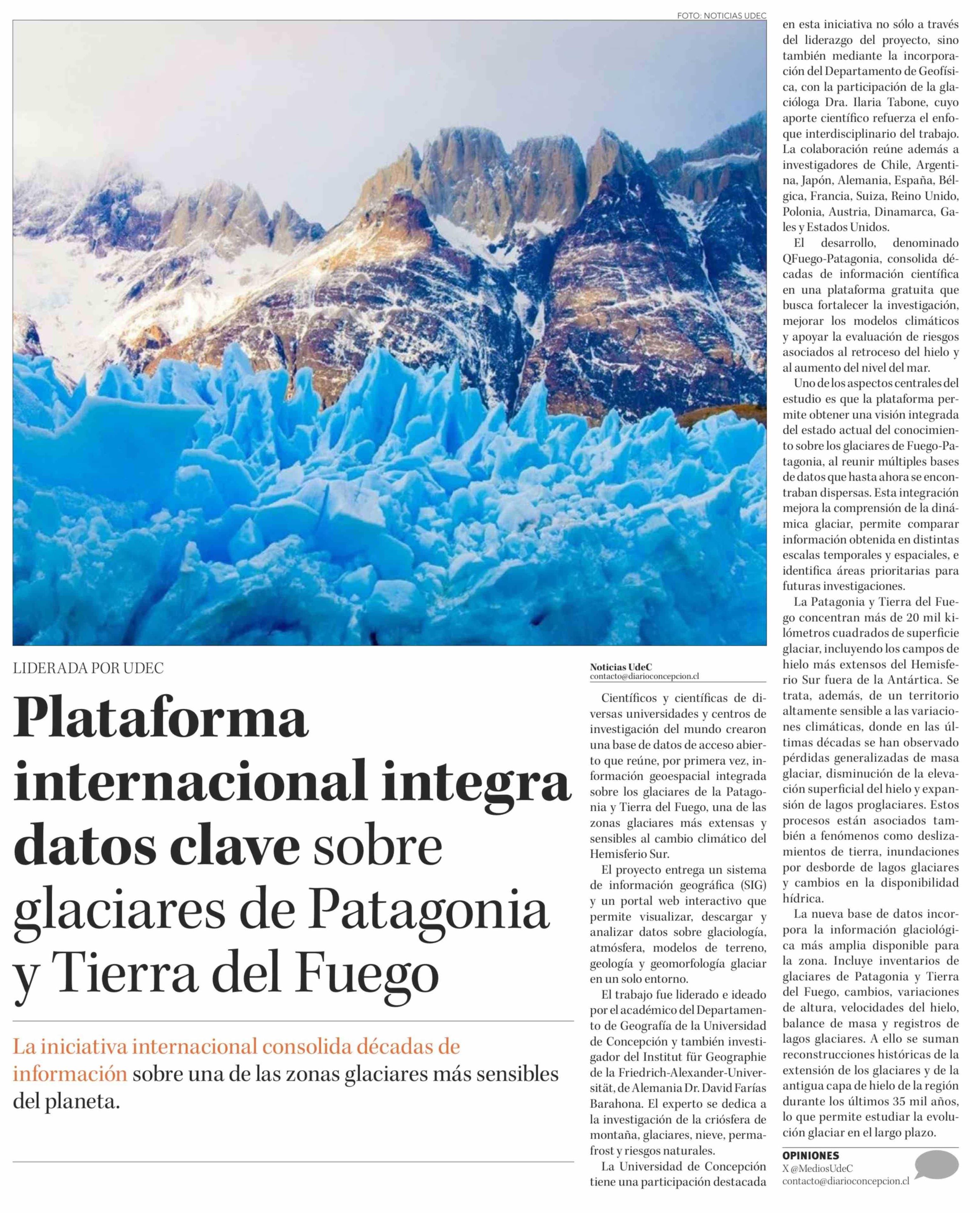 Título: Plataforma internacional integra datos clave sobre glaciares de Patagonia y Tierra del Fuego