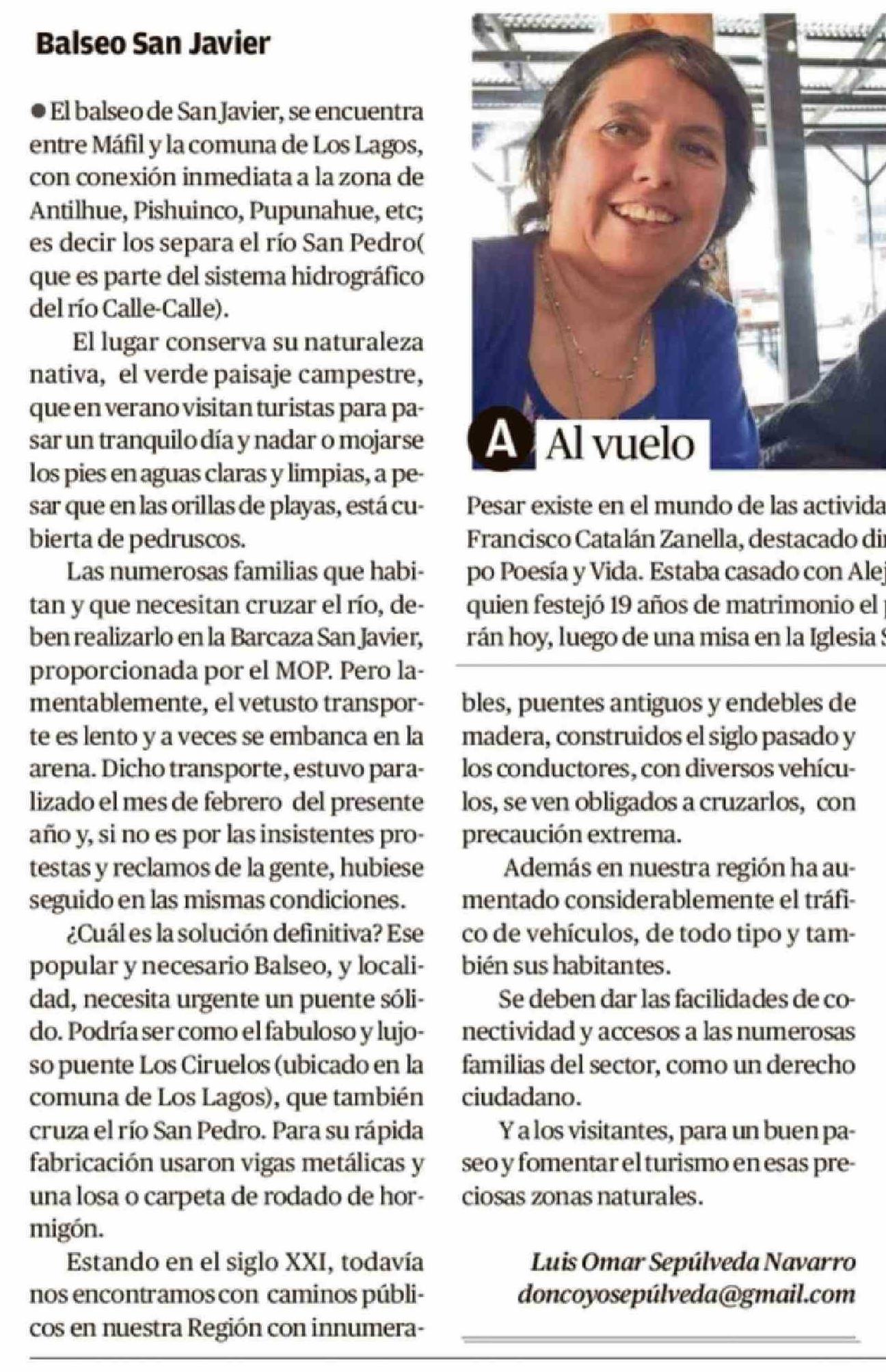 Cartas: Balseo San Javier 20-03-2026 Diario Austral Región de Los Ríos |