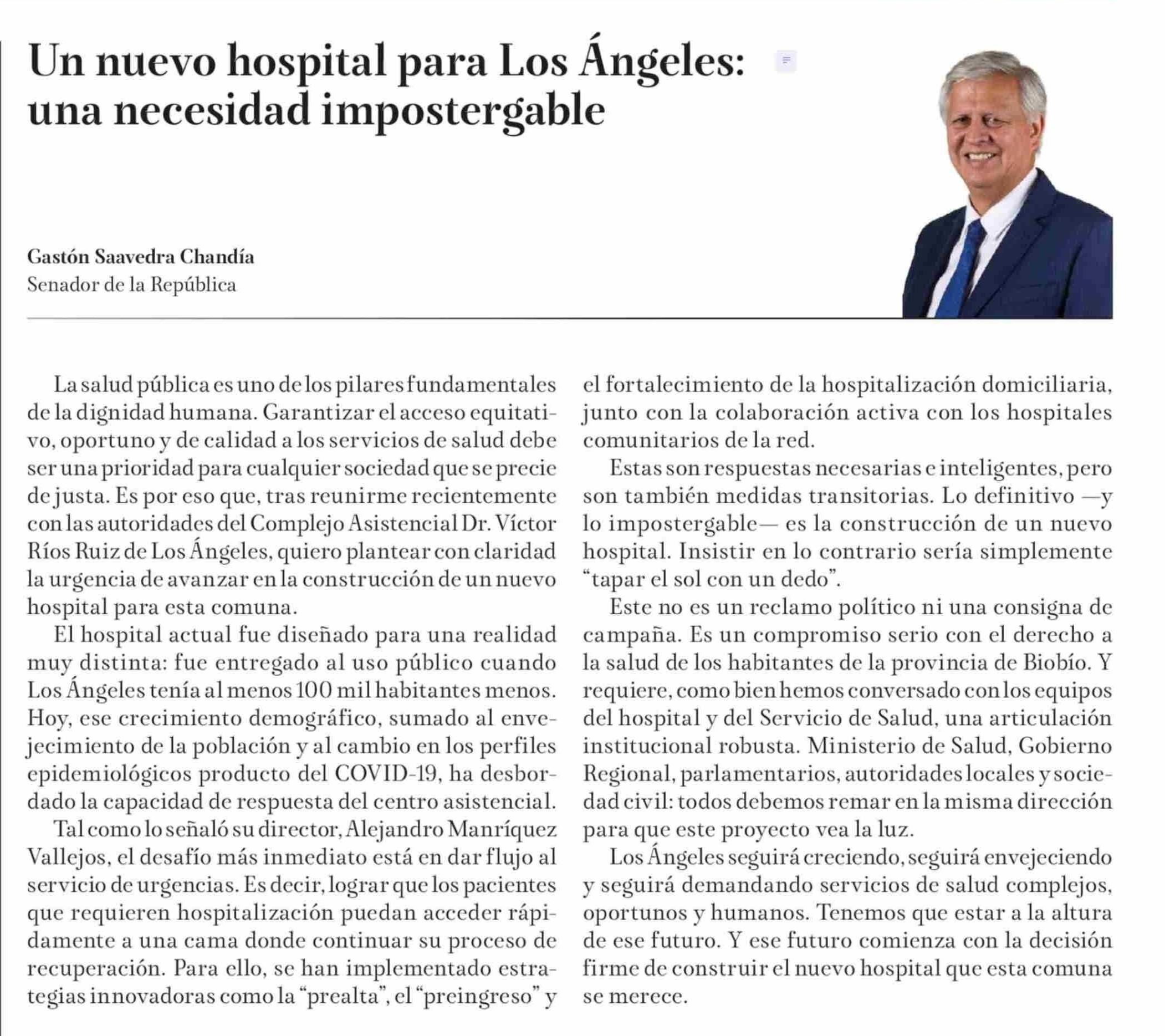 COLUMNAS DE OPINIÓN: Un nuevo hospital para Los Ángeles: una necesidad impostergable 06-06-2025 La Tribuna |