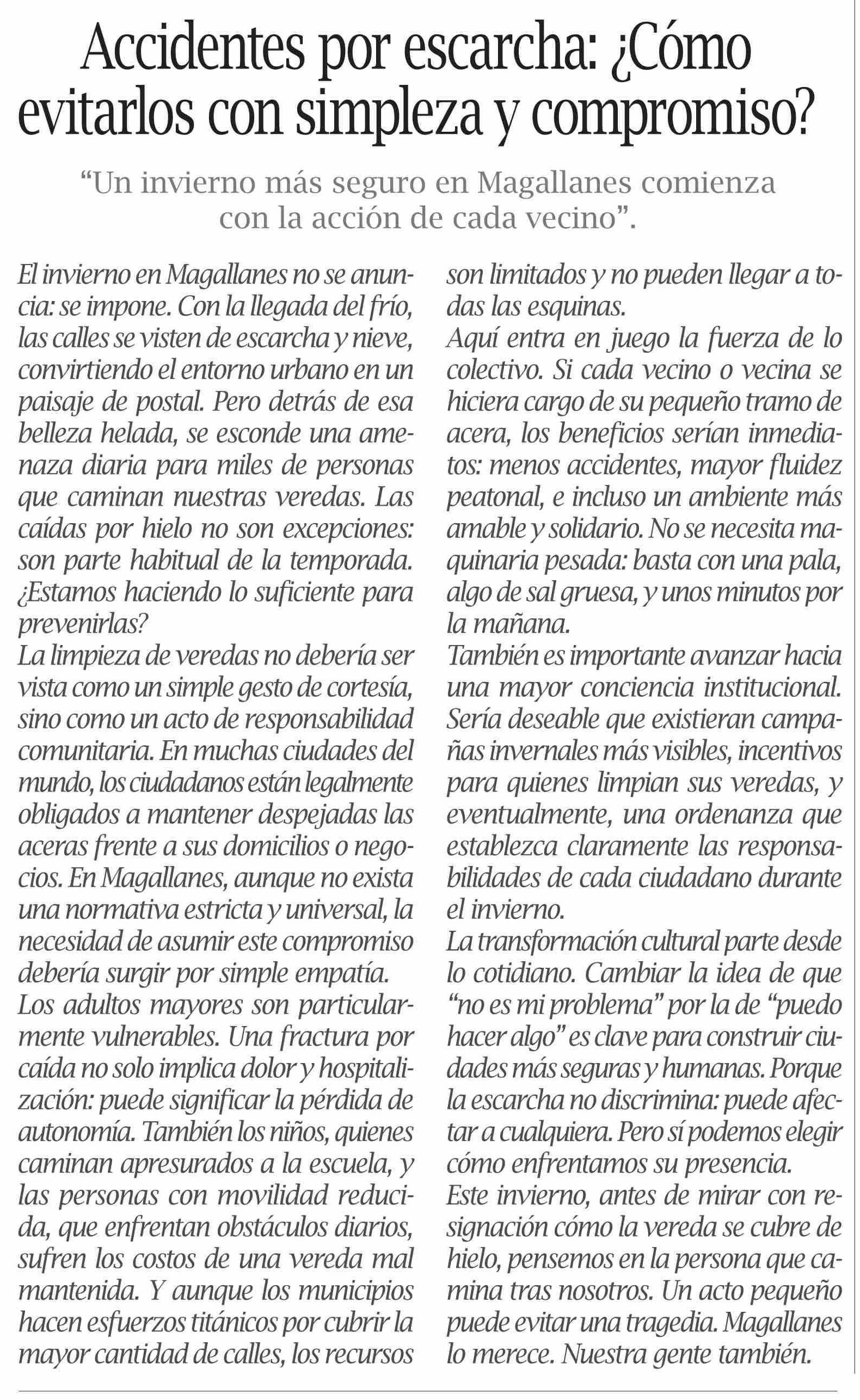 Editorial: Accidentes por escarcha: ¿Cómo evitarlos con simpleza y compromiso? 23-06-2025 El Pingüino |