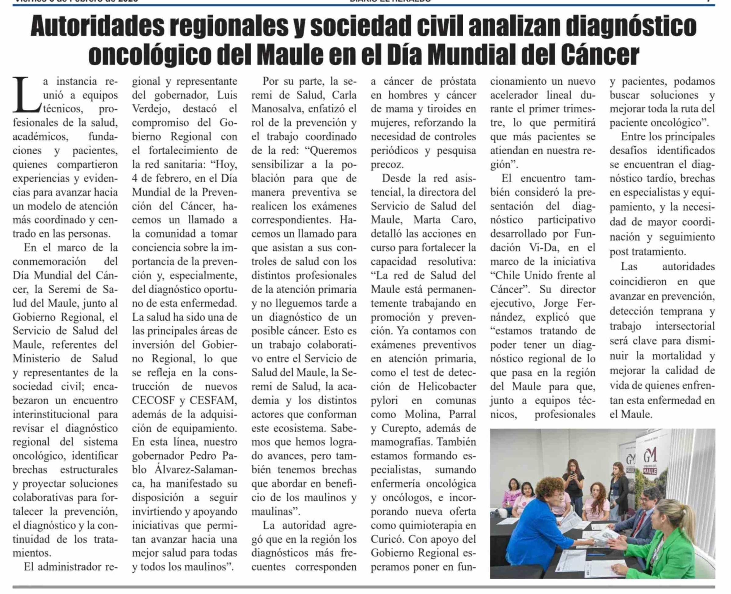 Autoridades regionales y sociedad civil analizan diagnóstico oncológico del Maule en el Día Mundial del Cáncer 06-02-2026 El Heraldo |