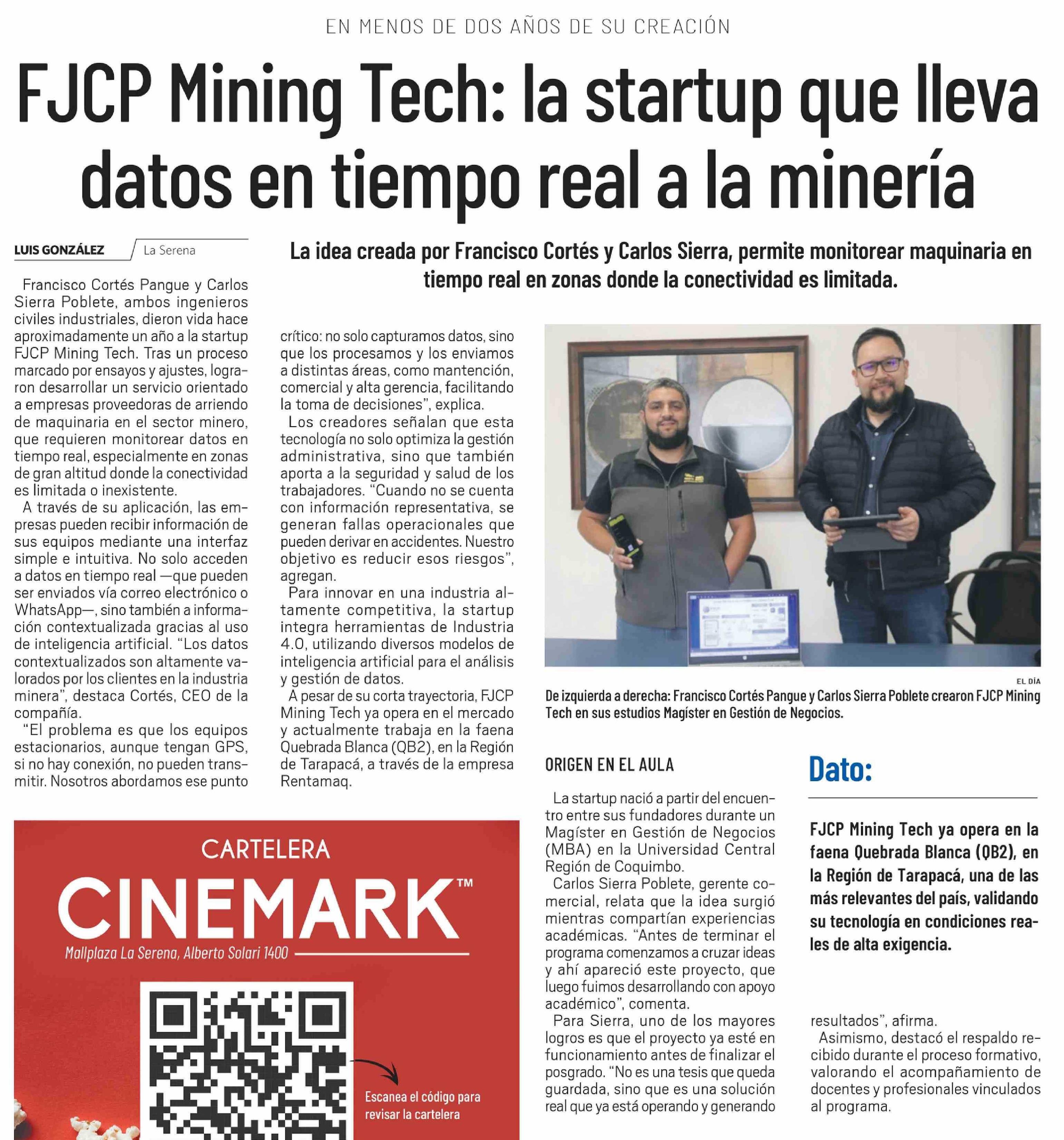 FJCP Mining Tech: la startup que lleva datos en tiempo real a la minería 05-04-2026 El Día |