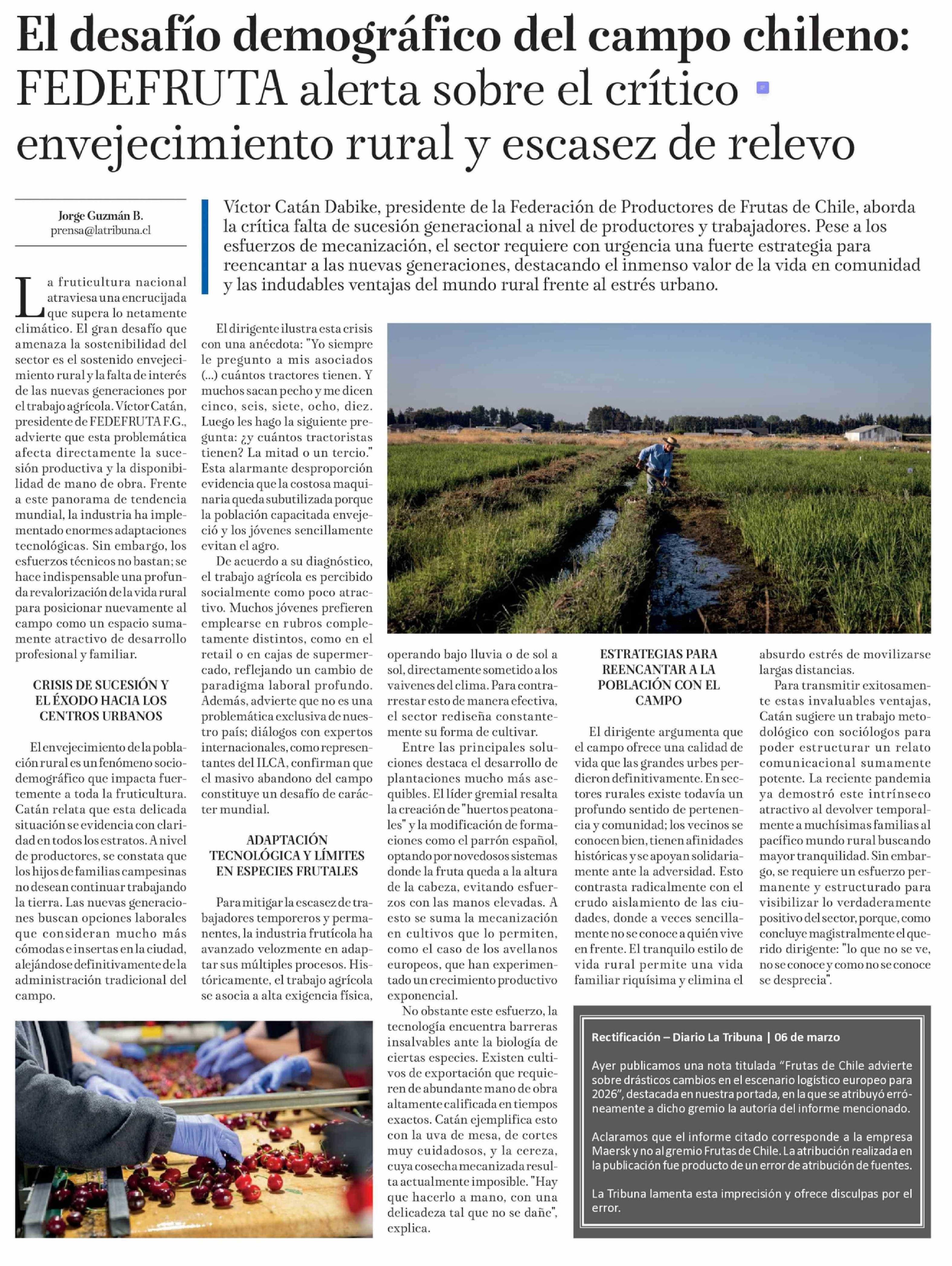 Título: El desafío demográfico del campo chileno: FEDEFRUTA alerta sobre el crítico envejecimiento rural y escasez de relevo